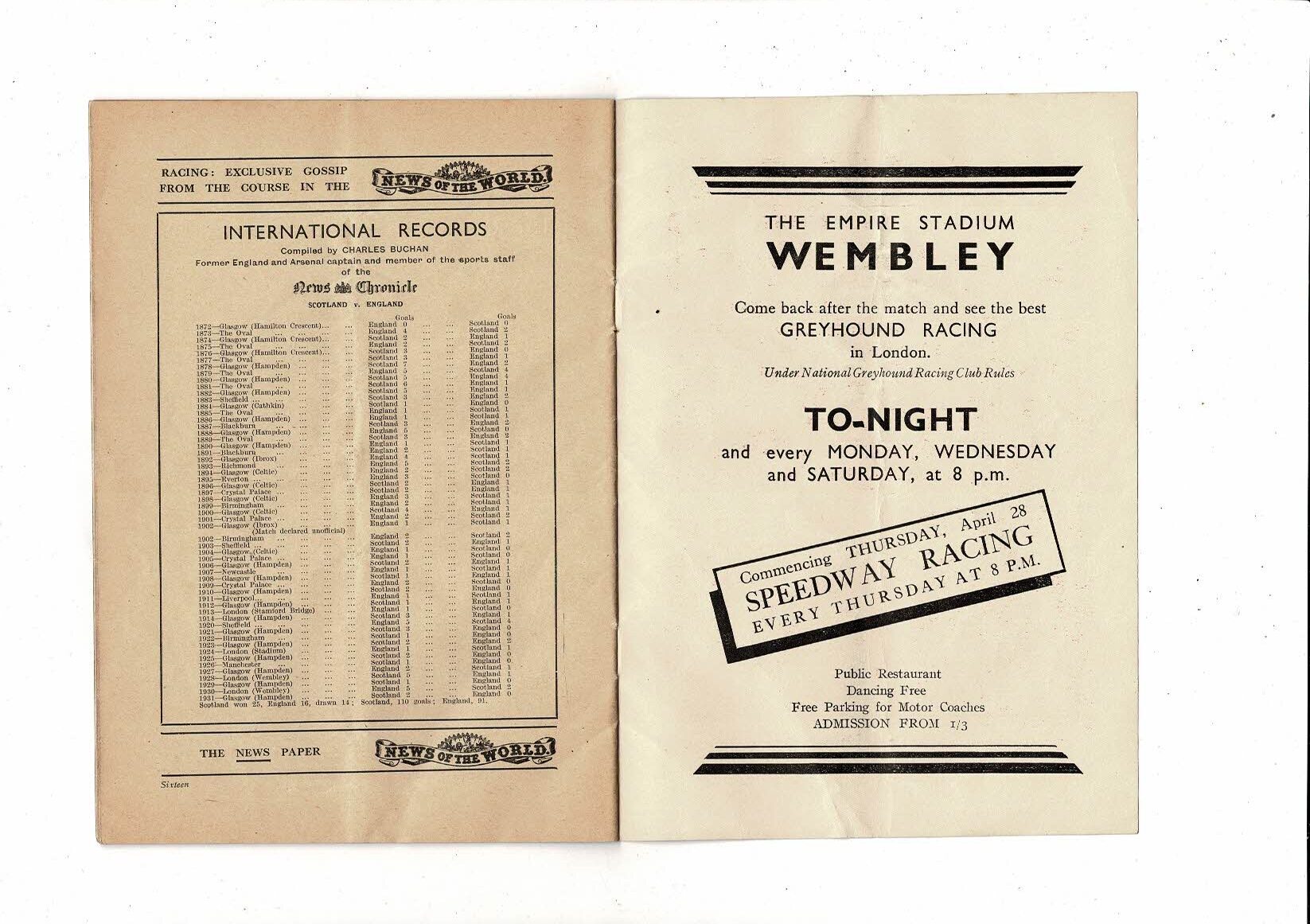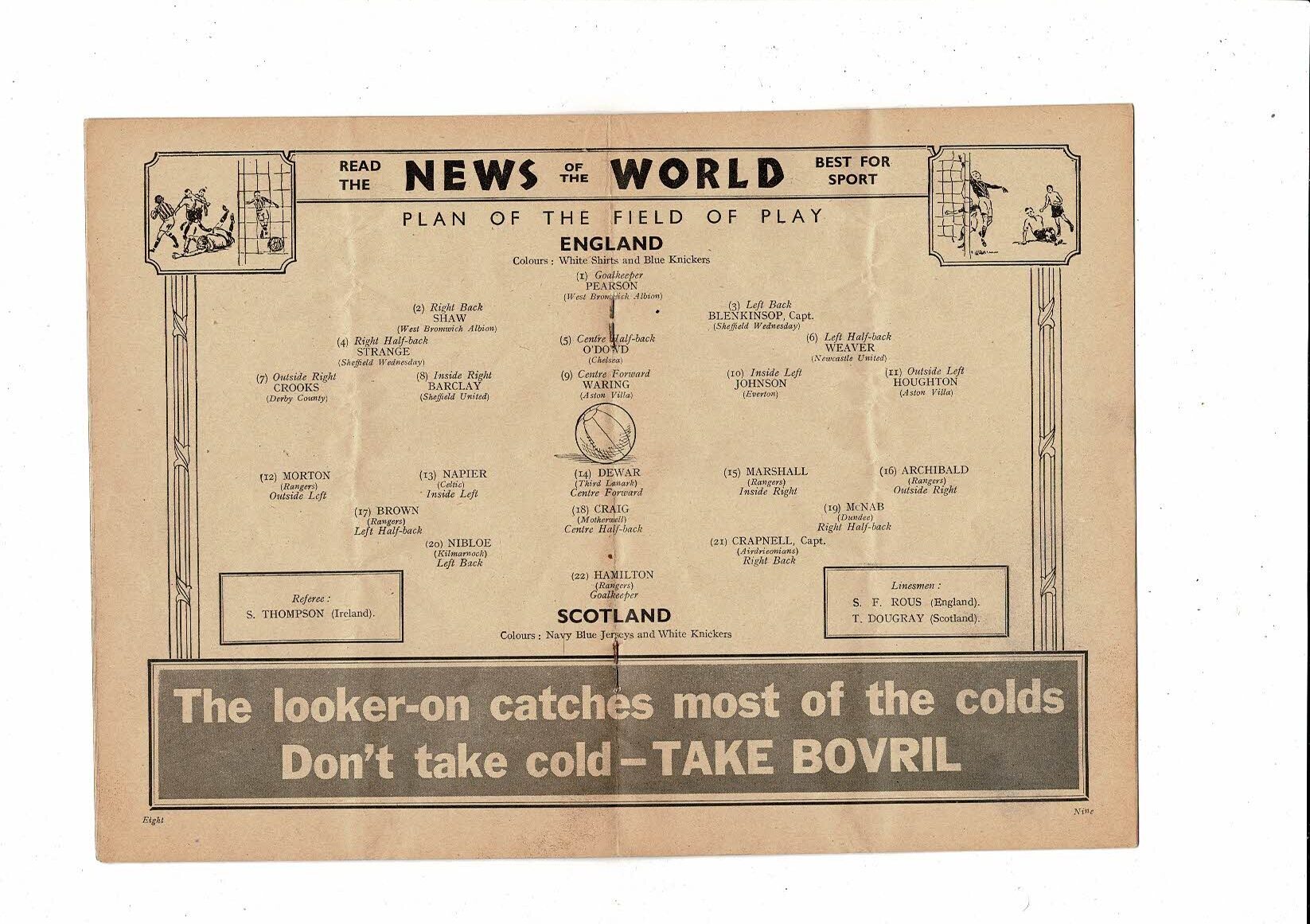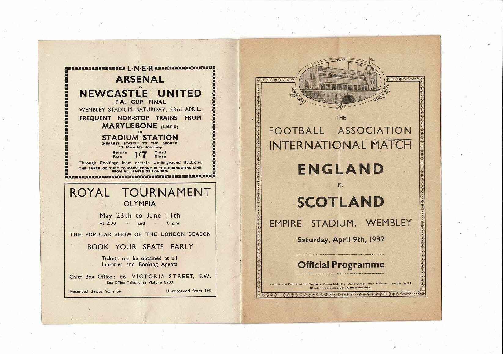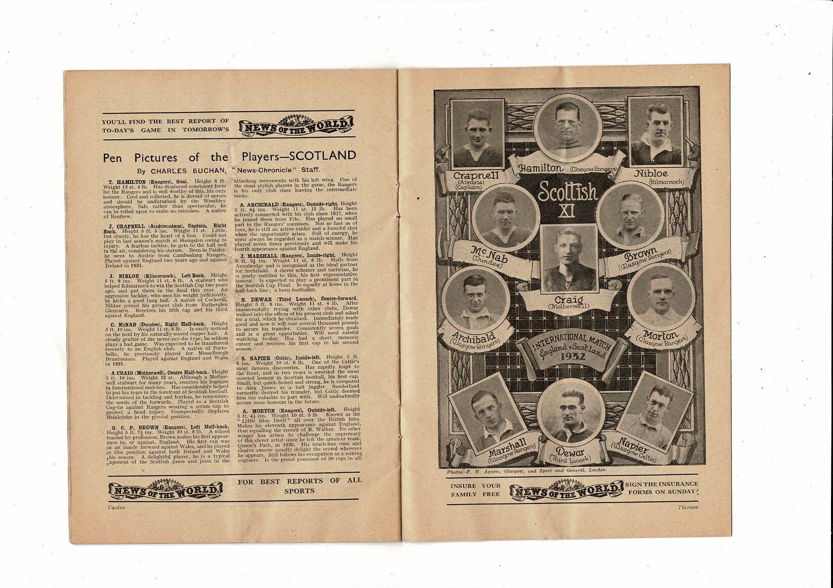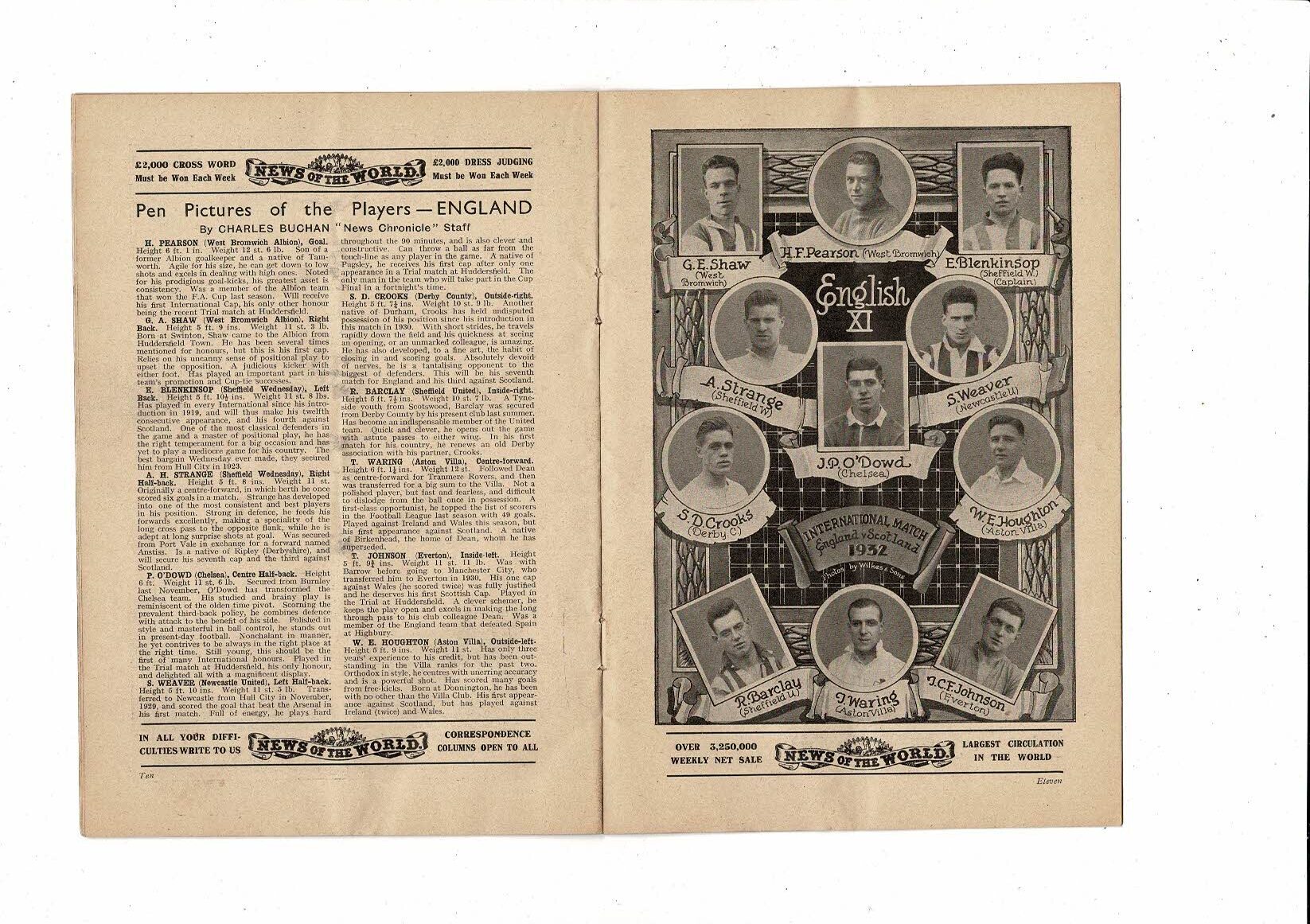 1932 England v Scotland Home International Original Football Programme