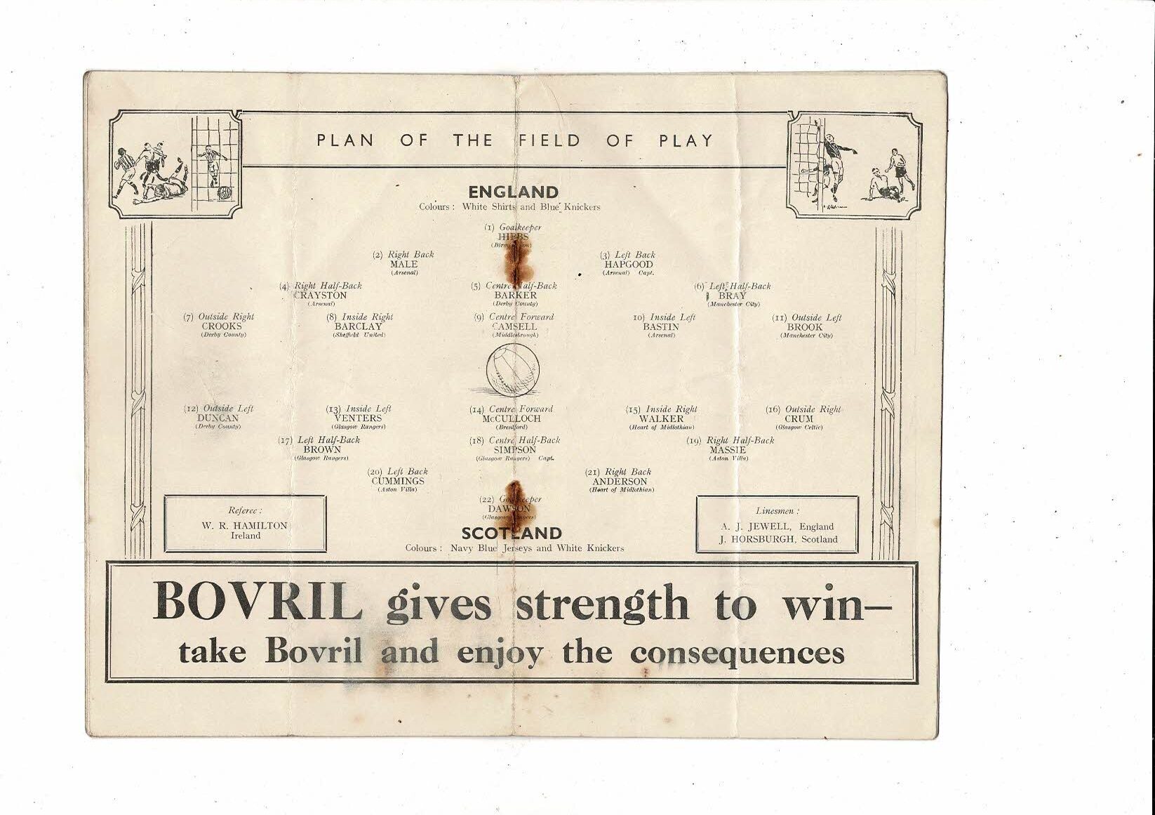 This original Football Programme is creased also has a fold with some staining. No handwriting. Please see scans.