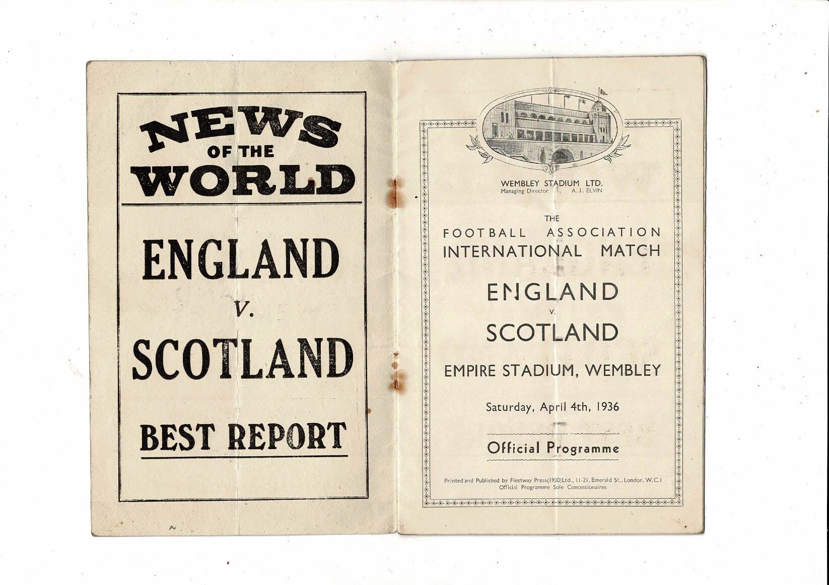1936 England v Scotland International Original Football Programme