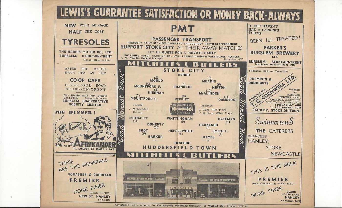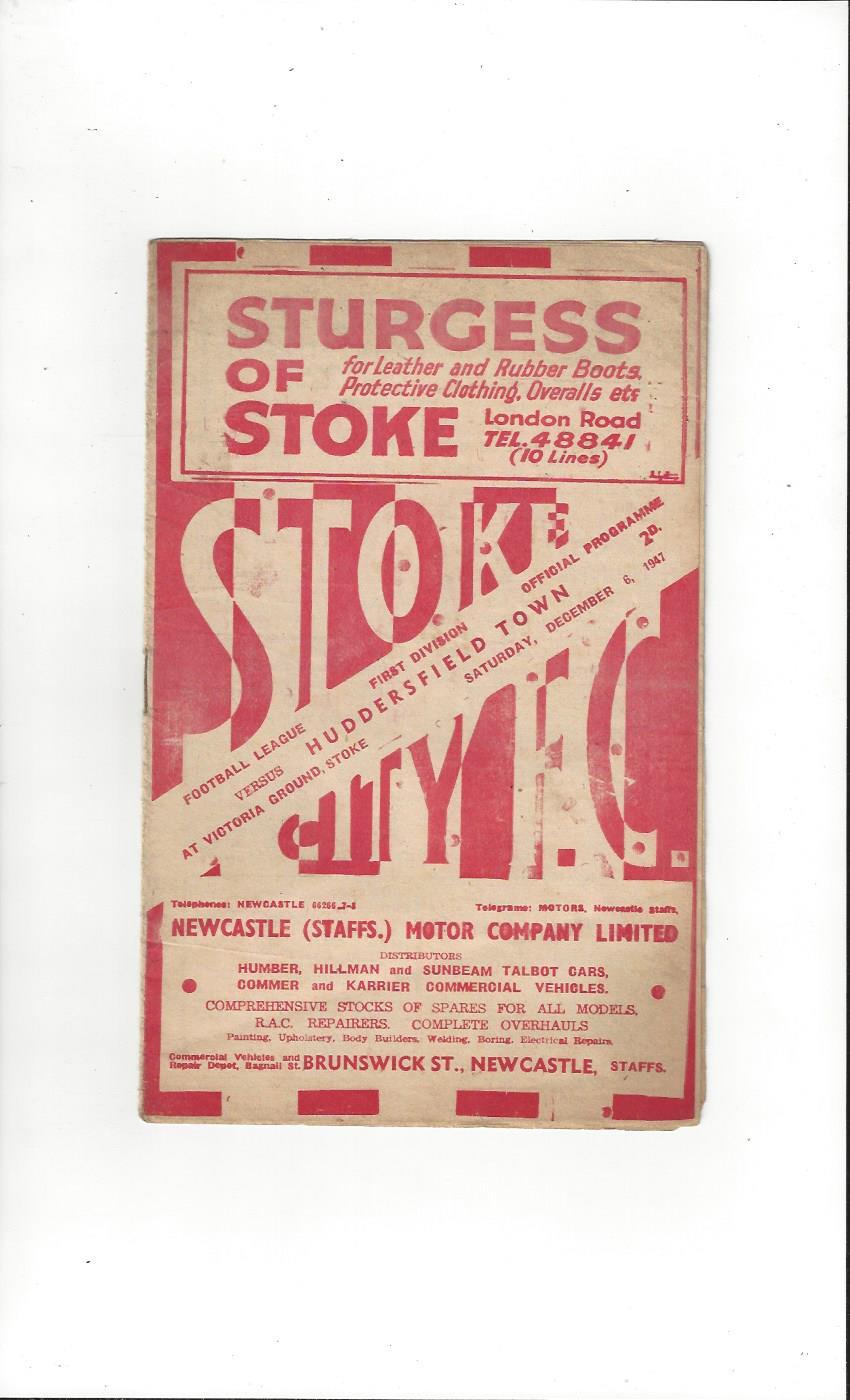 1947/48 Stoke City v Huddersfield Town Football Programme