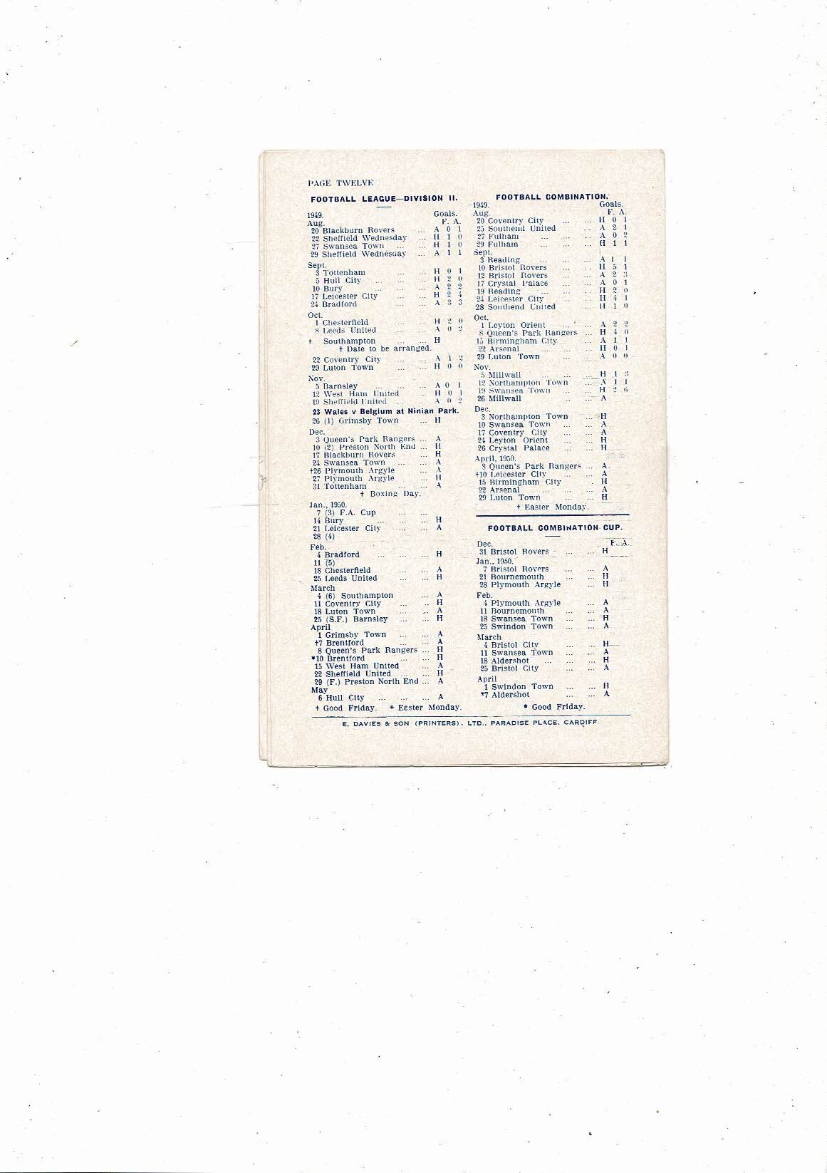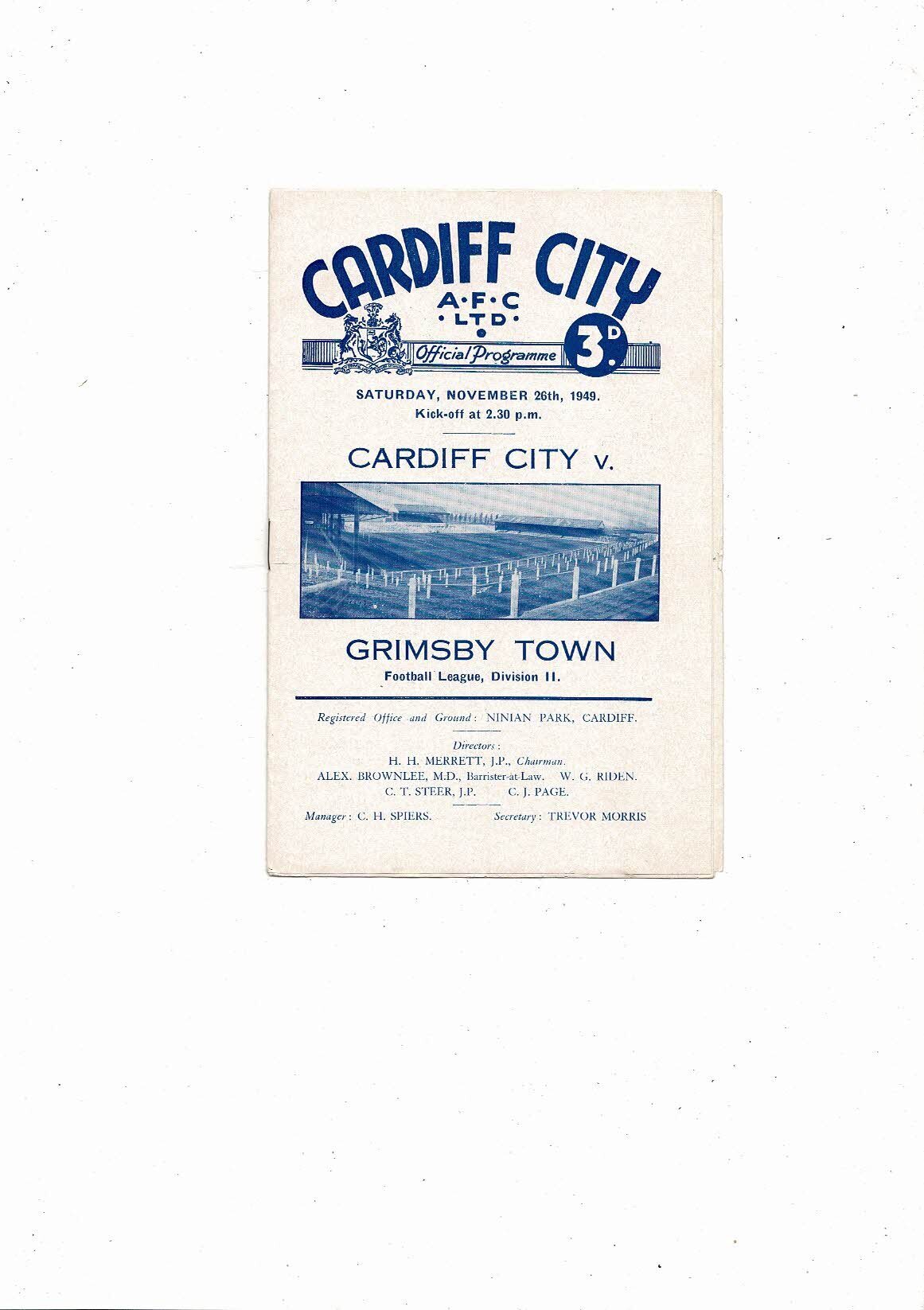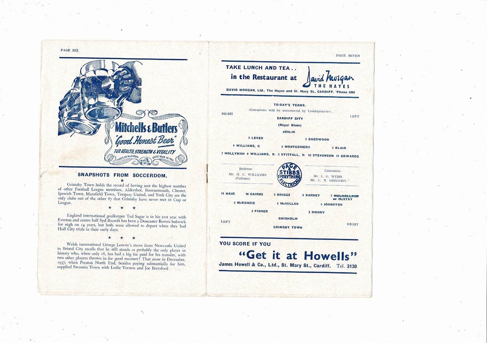 1949/50 Cardiff City v Grimsby Town Football Programme + Press Reports