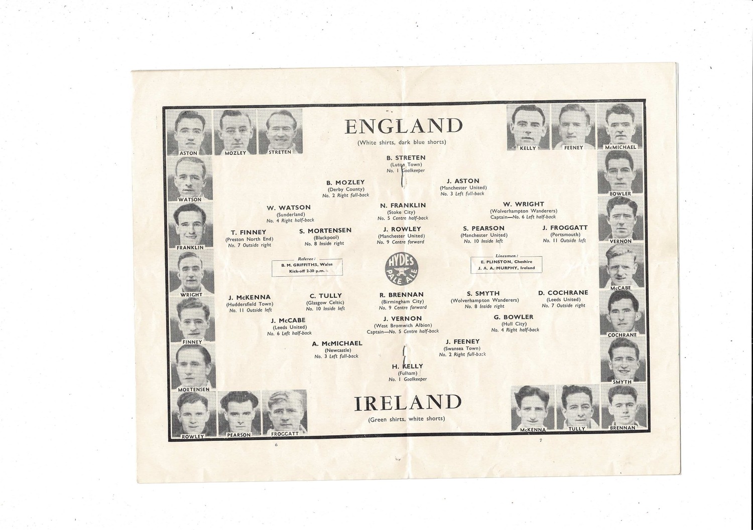 1949 England v Northern Ireland Football Programme @ Manchester City