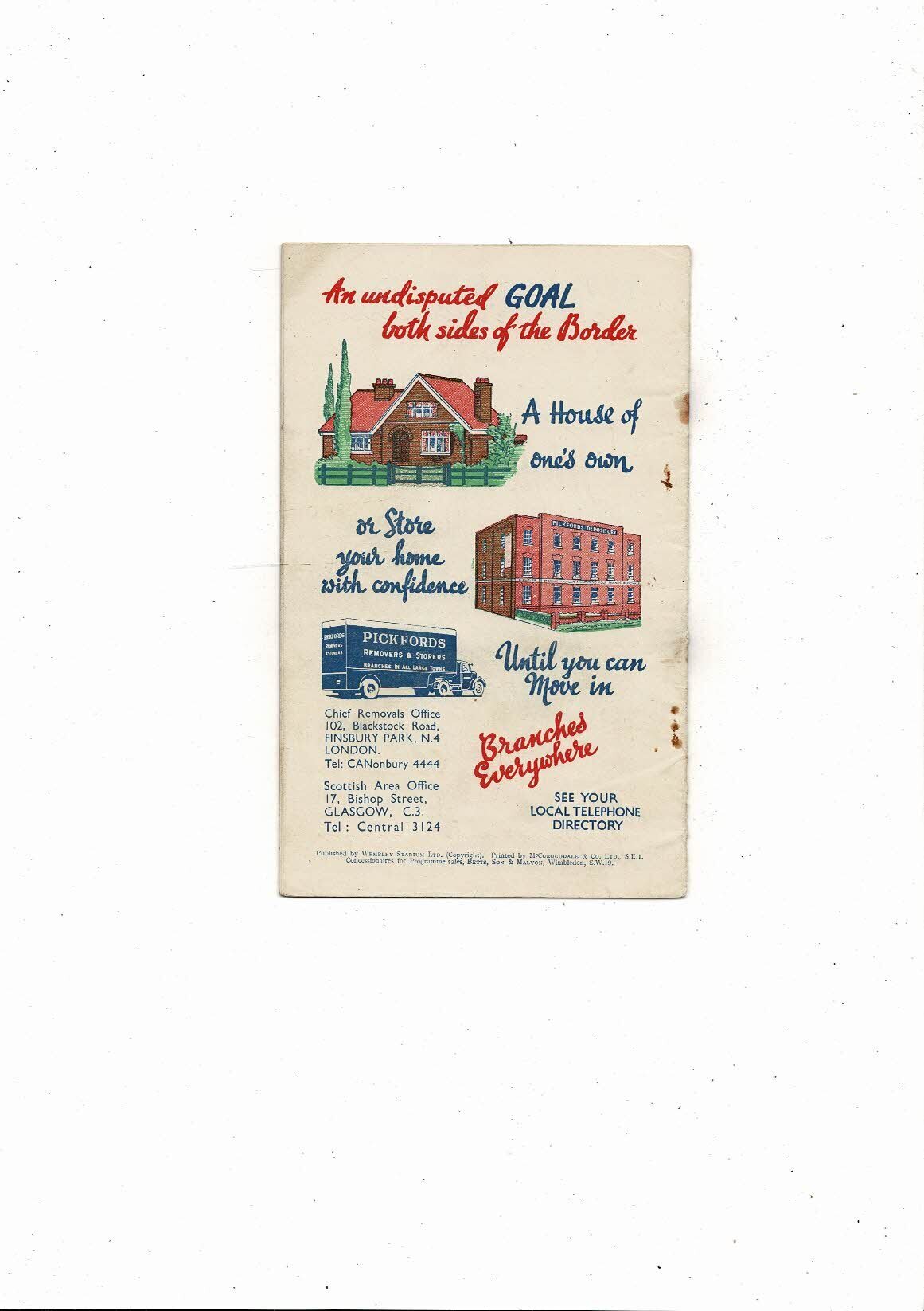 This original Football Programme is creased with some staining, rusty staples, tiny nic on front & small tear at both ends of spine. No handwriting. Please see scans