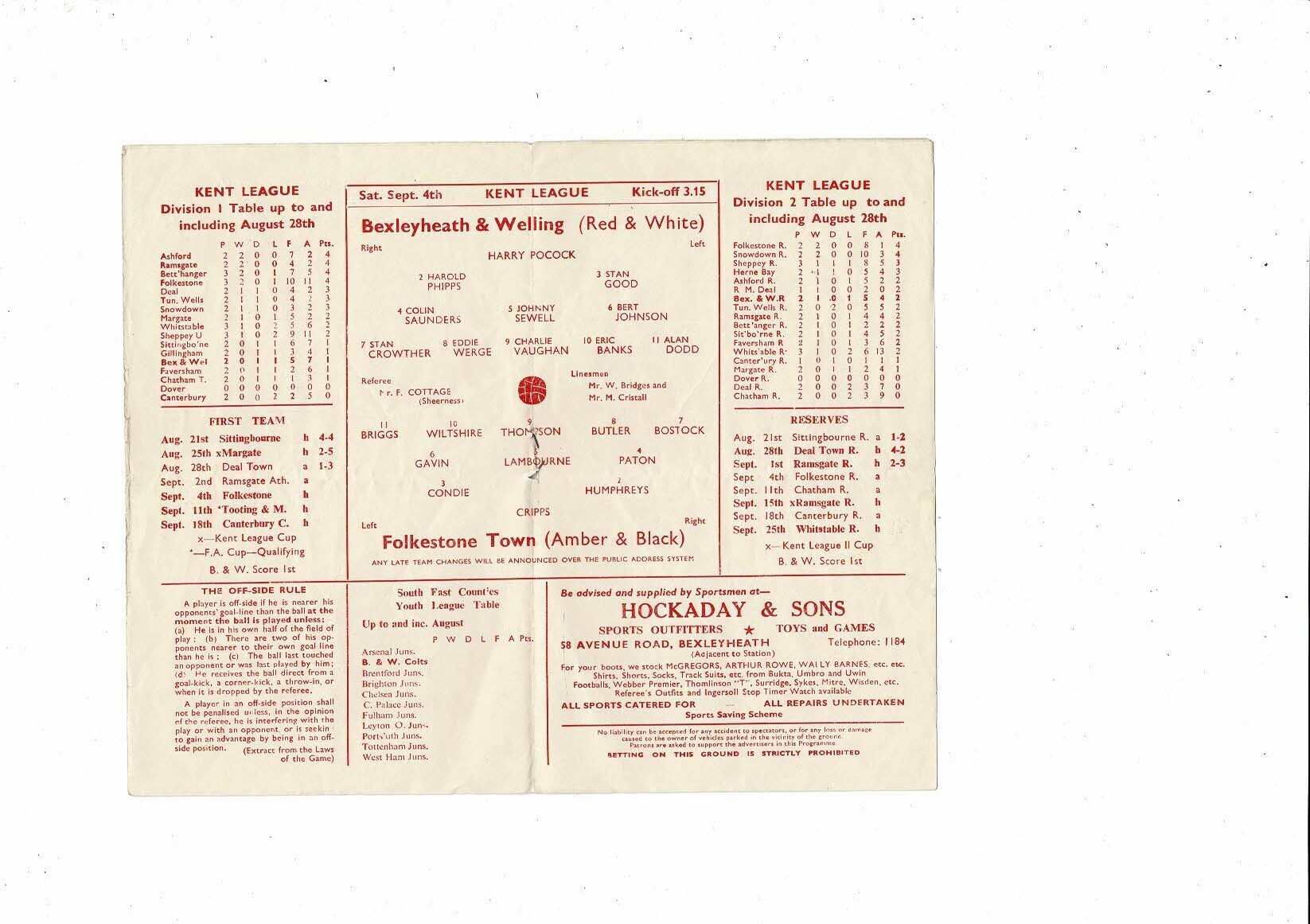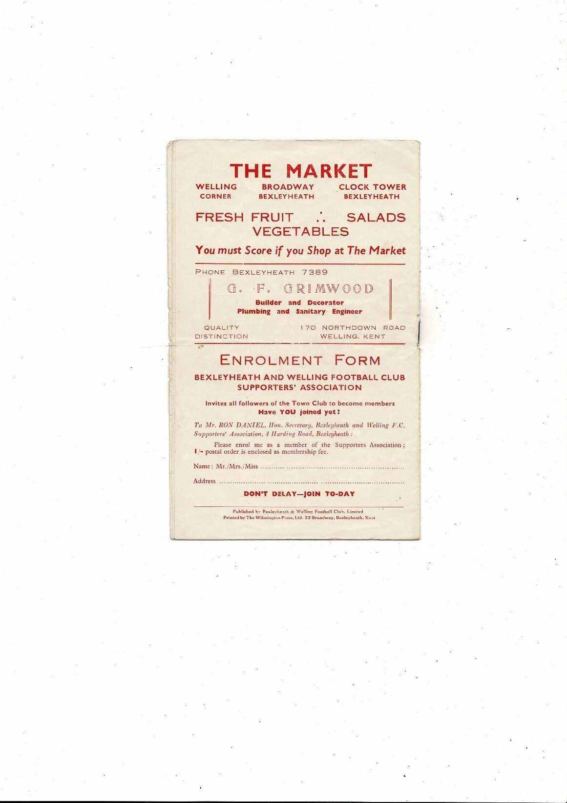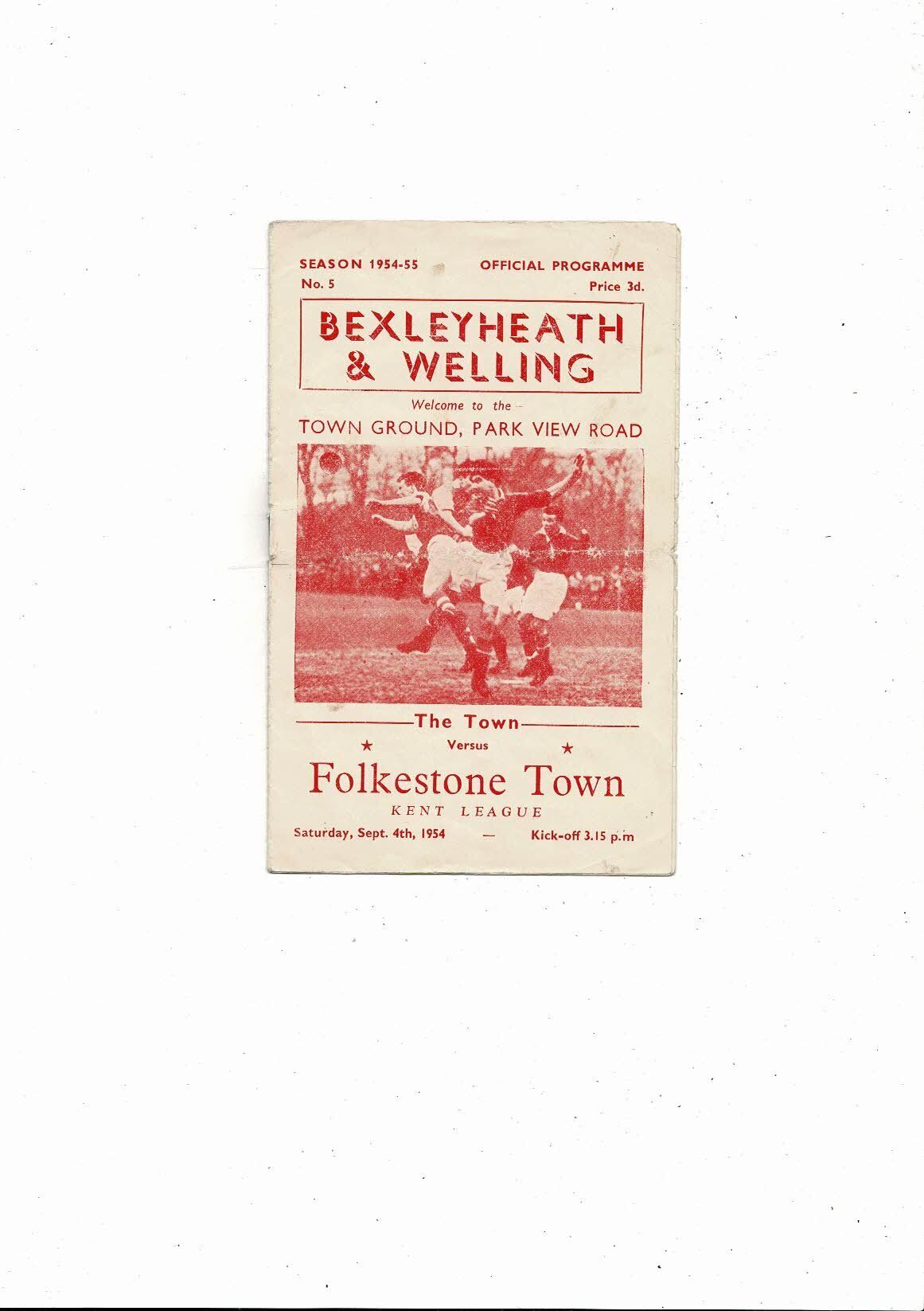 1954/55 Bexleyheath & Welling v Folkestone Town Kent League Football Programme