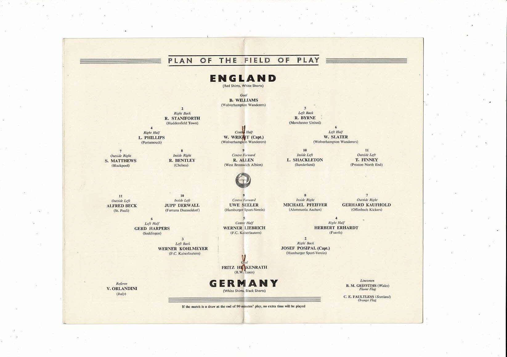 1954 England v Germany Football Programme