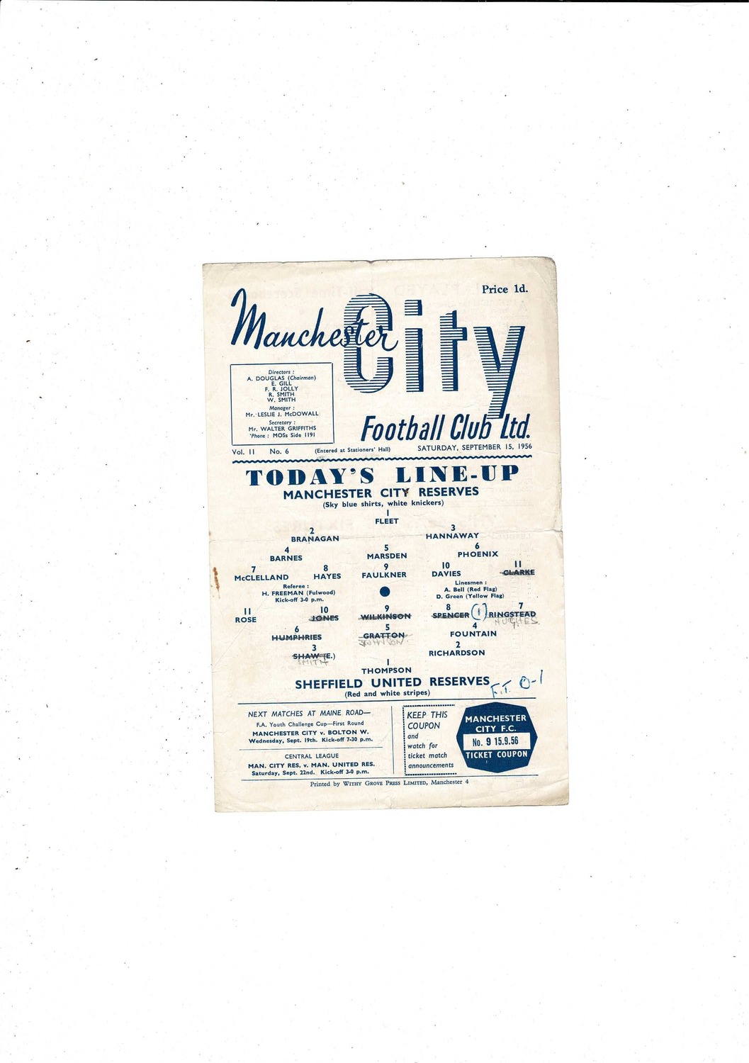 Manchester City v Sheffield United Central League Football Programme 1956/57