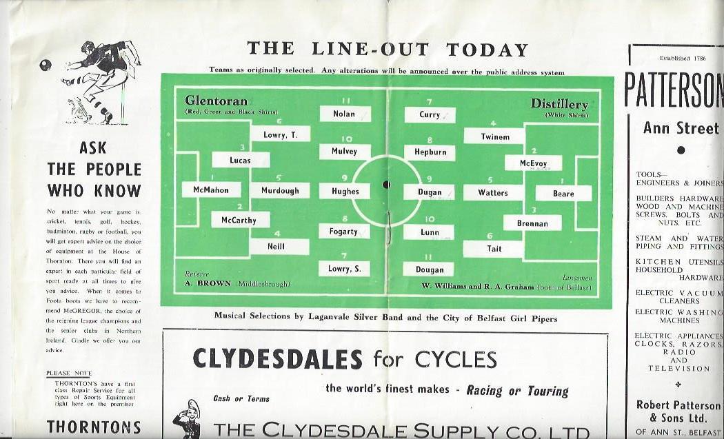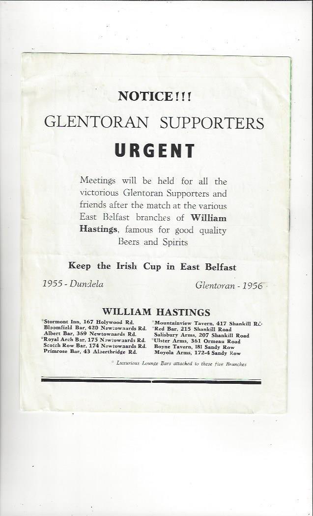 1956 Distillery v Glentoran Irish Cup Final Football Programme