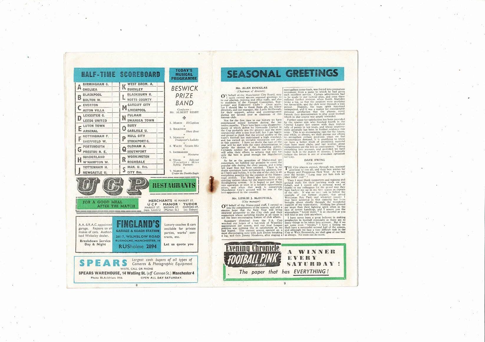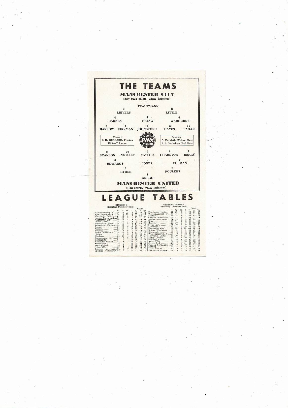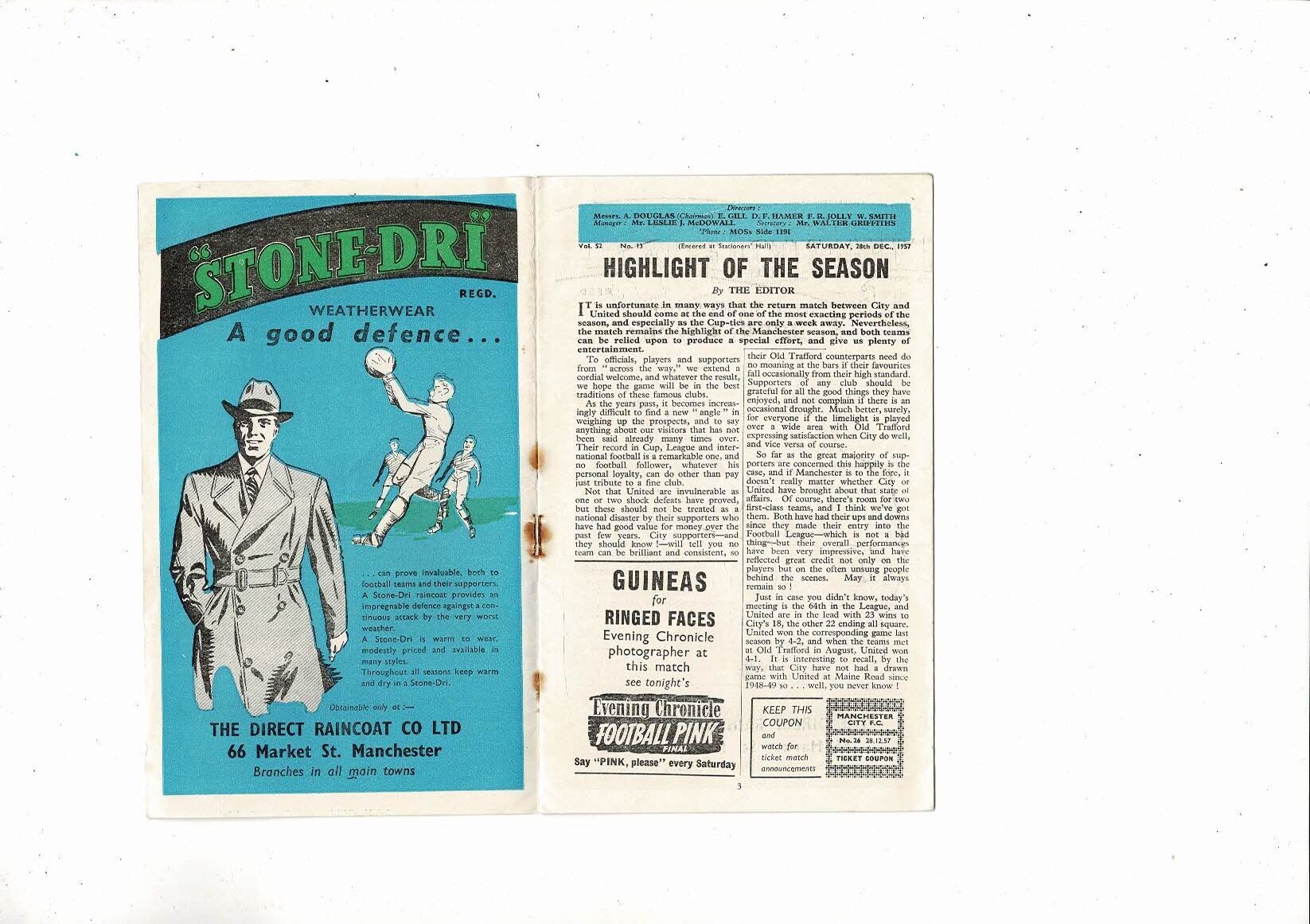 1957/58 Manchester City v Manchester United Football Programme + Insert