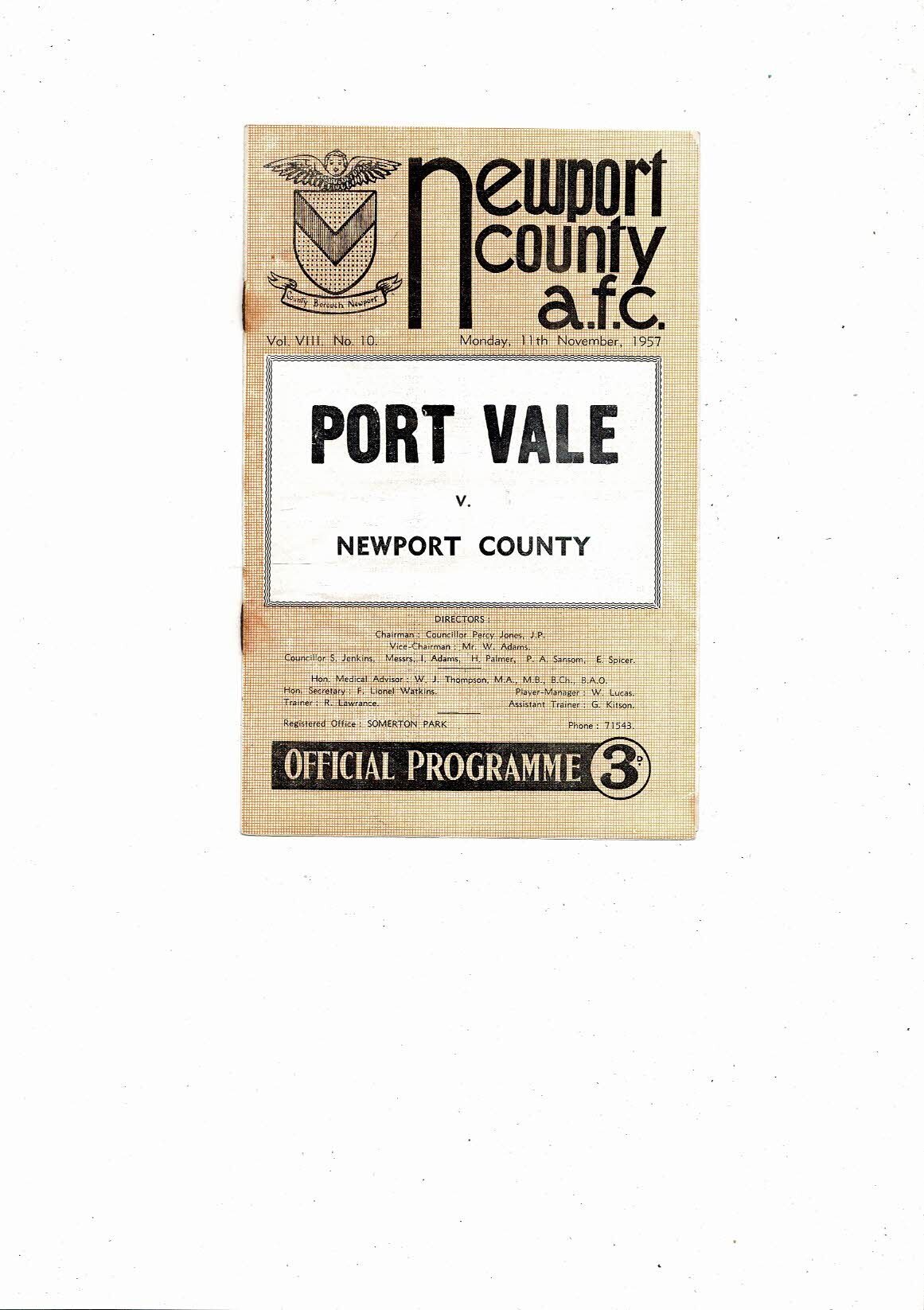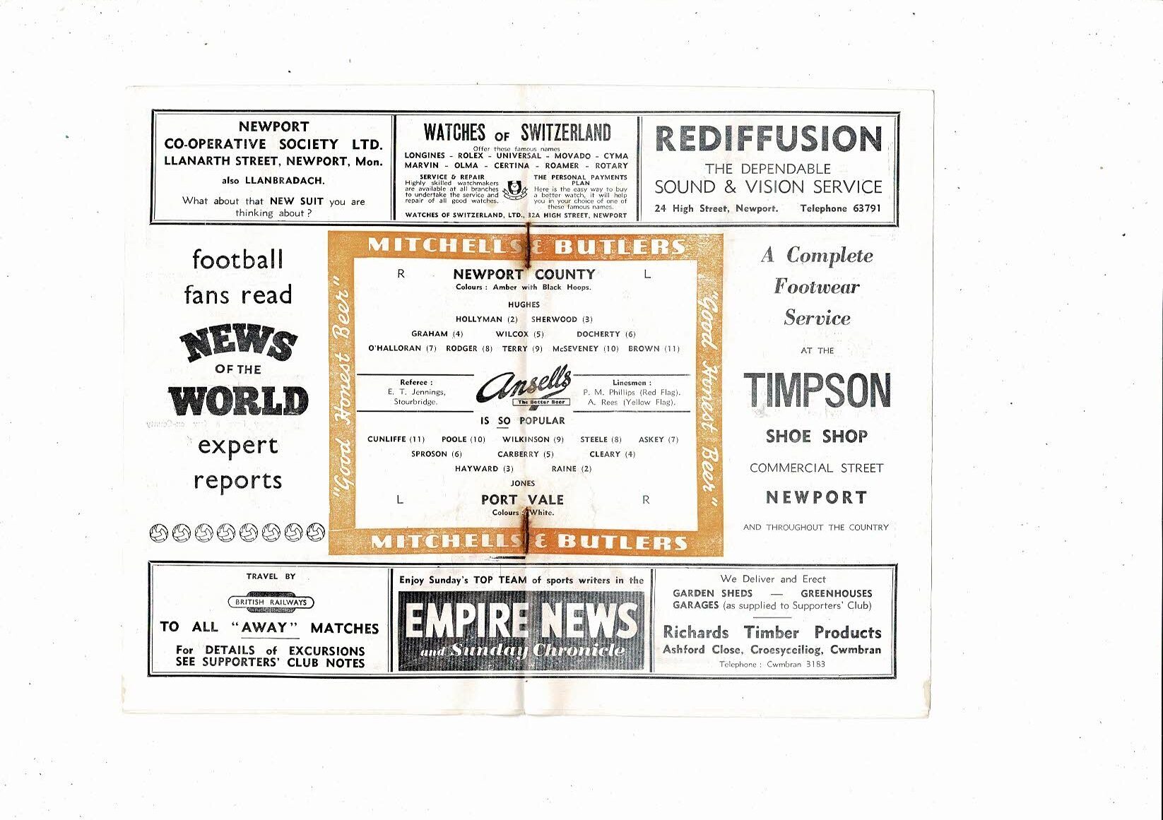 1957/58 Newport County v Port Vale Football Programme