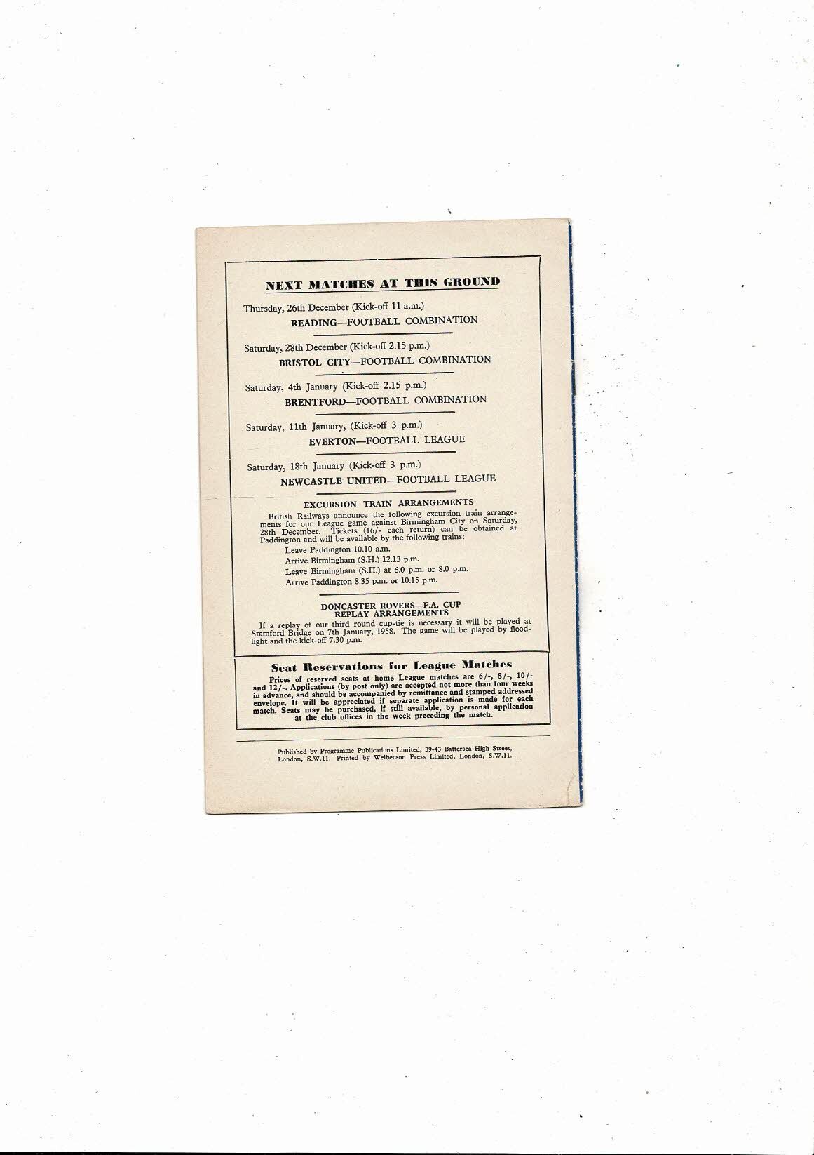1957/58 v Chelsea v Portsmouth Football Programme
