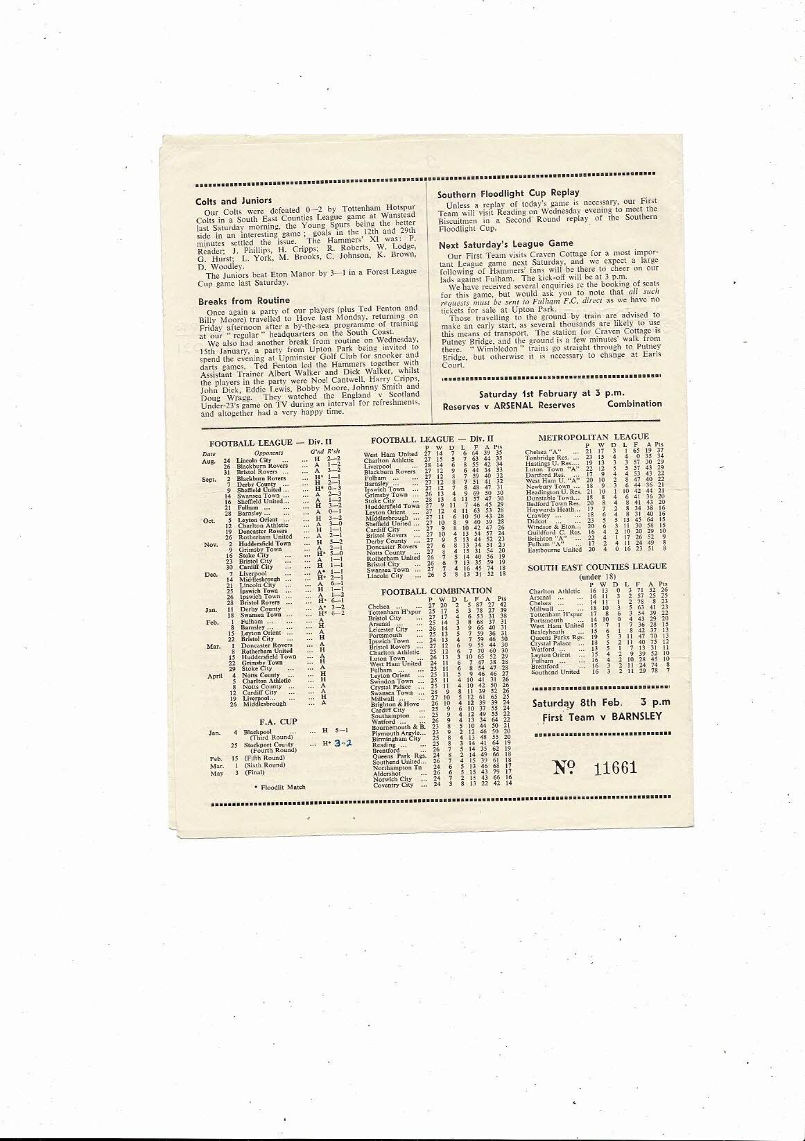 This Original 4 page Football Programme is creased with a tiny tear on fold & a couple of tiny nic's, score, scorers, one result, attendance & receipts noted. Please see scans