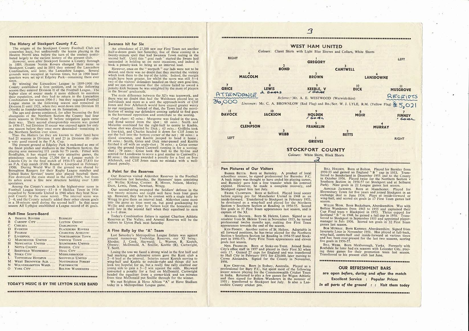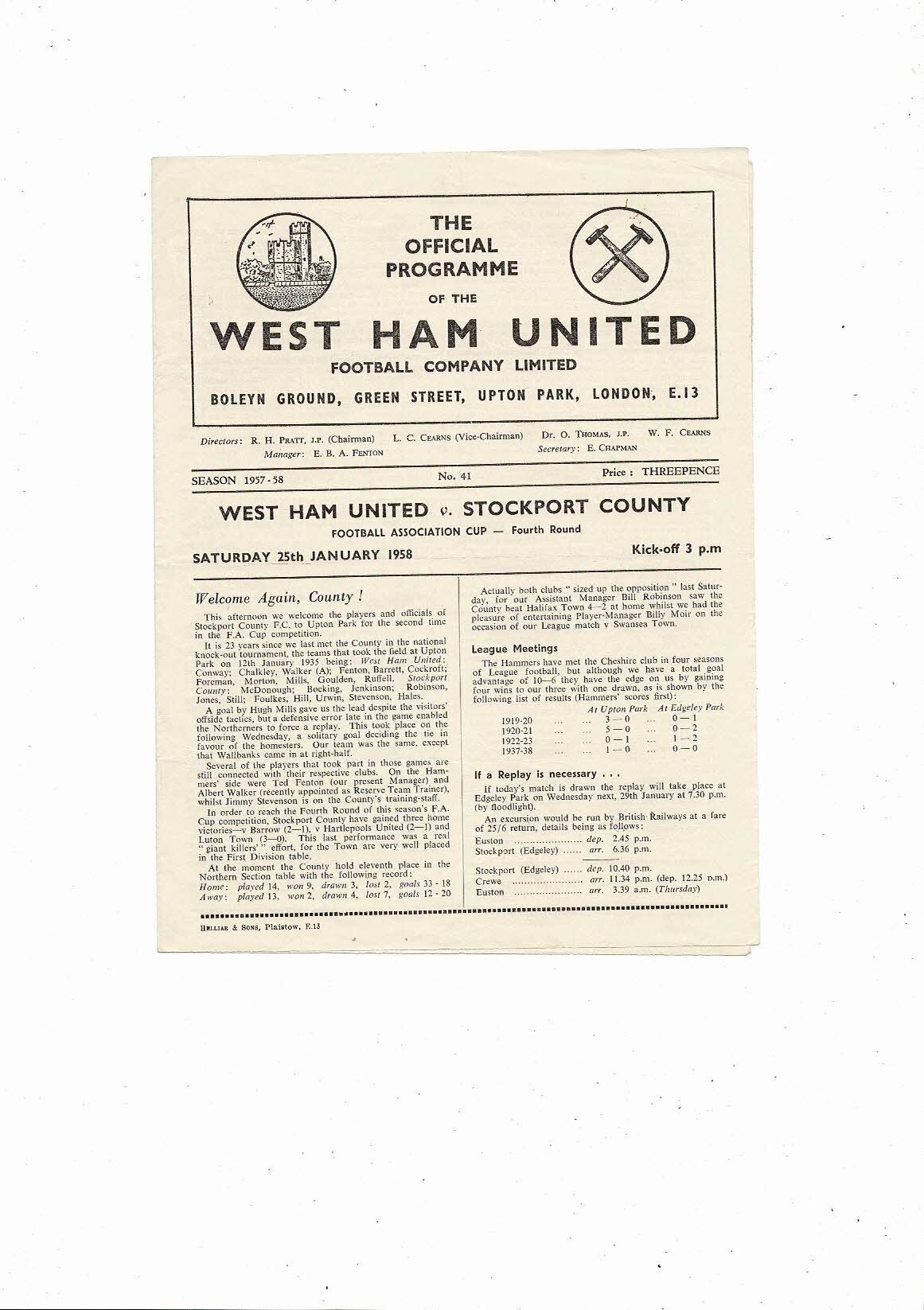 1957/58 West Ham United v Stockport County FA Cup Football Programme