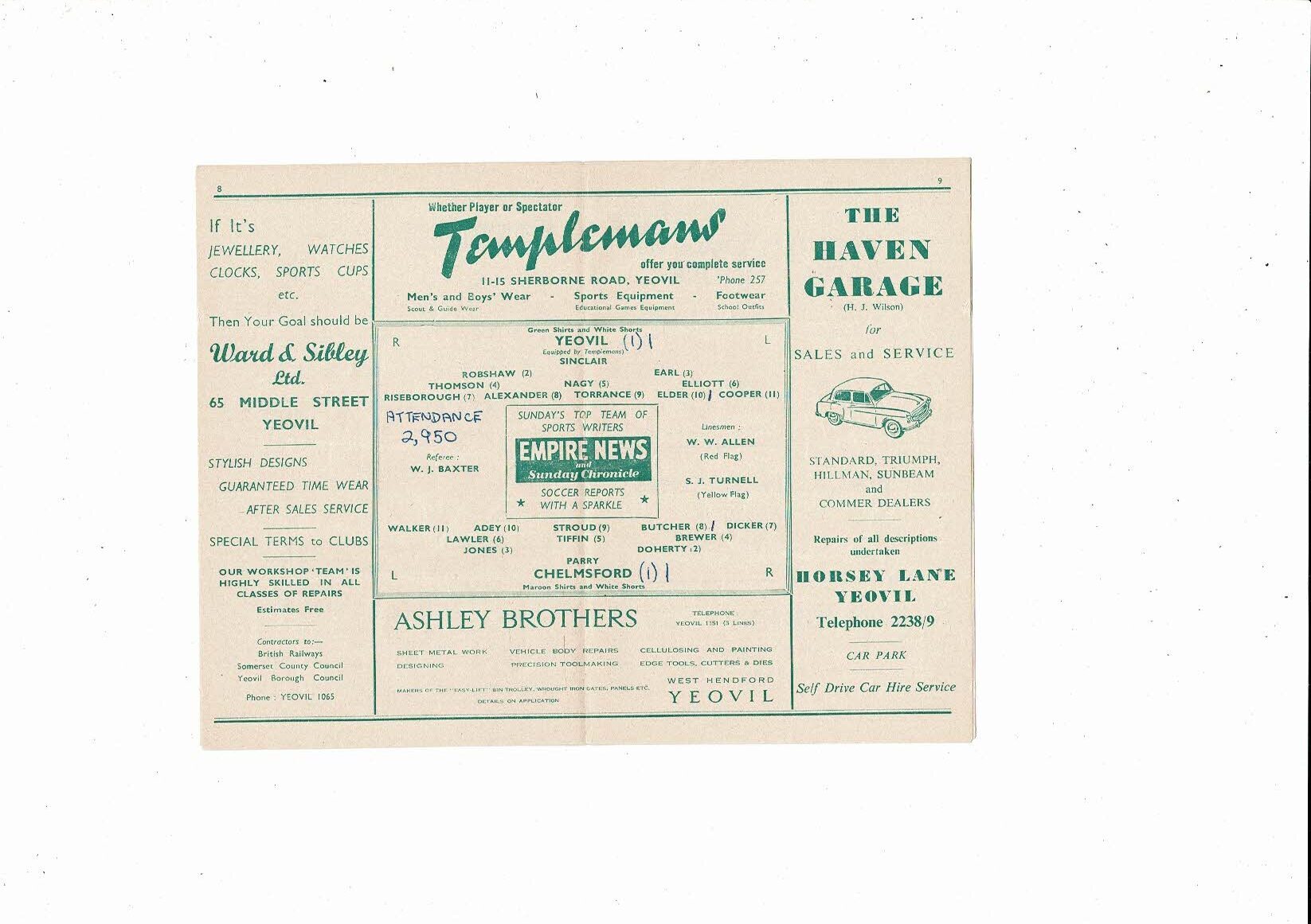 1957/58 Yeovil Town v Chelmsford Southern League Football Programme