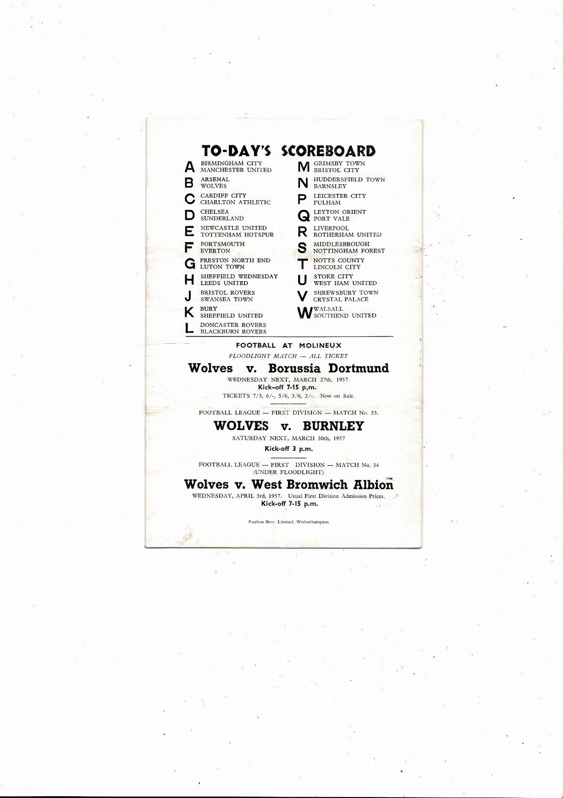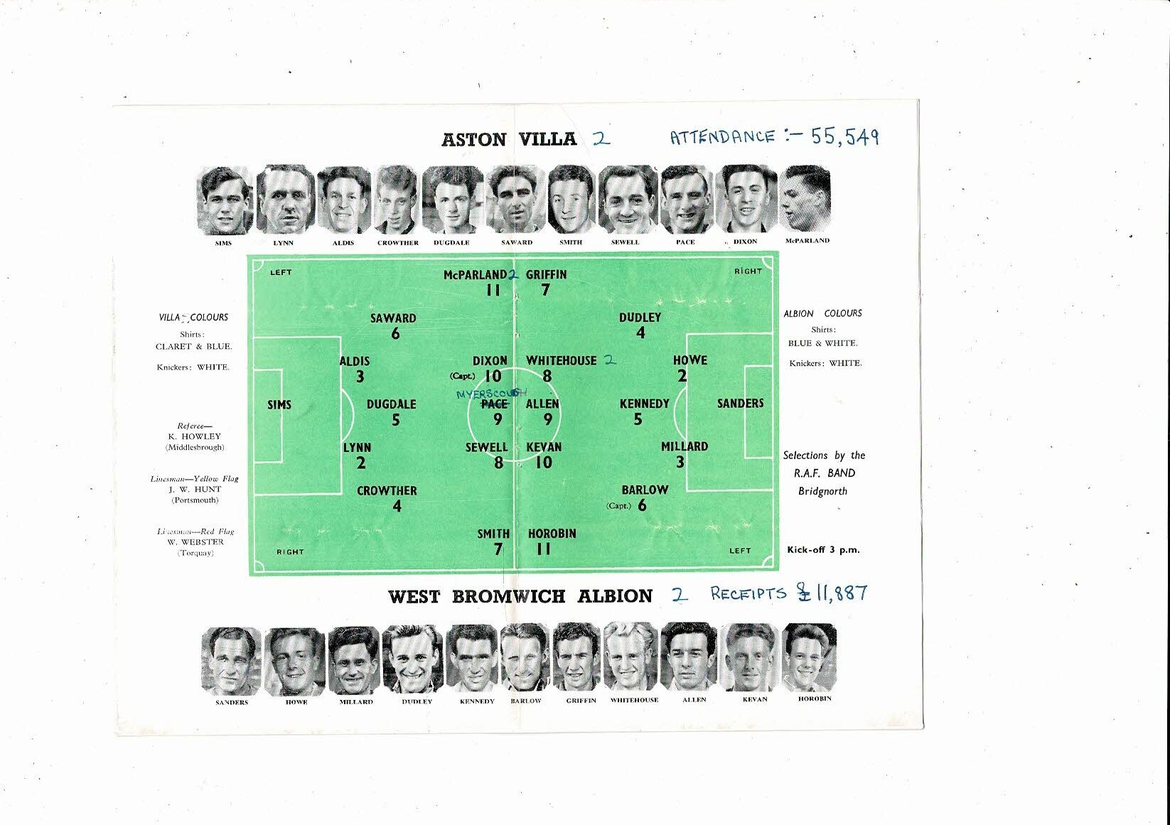 1957 Aston Villa v West Bromwich Albion FA Cup Semi Final Football Programme @ Wolves