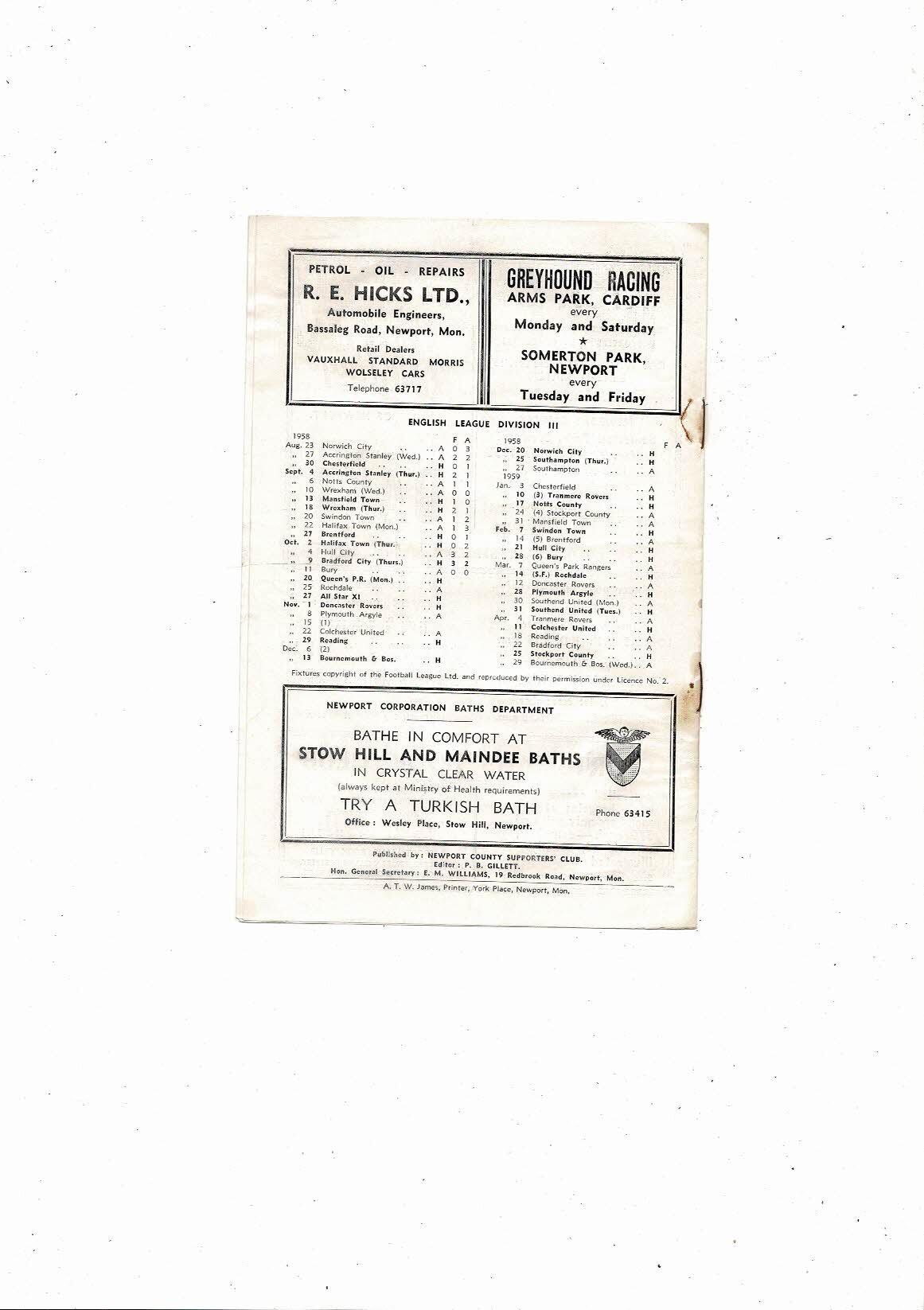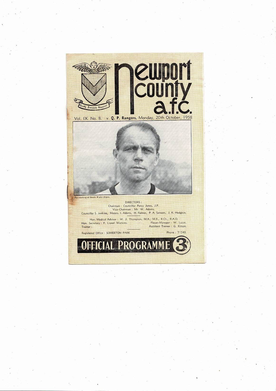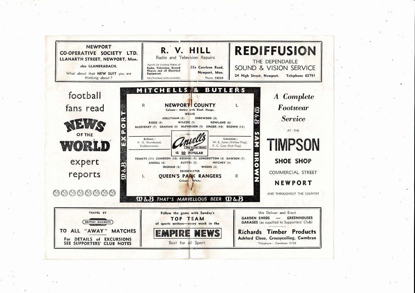 1958/59 Newport County v Queens Park Rangers Football Programme