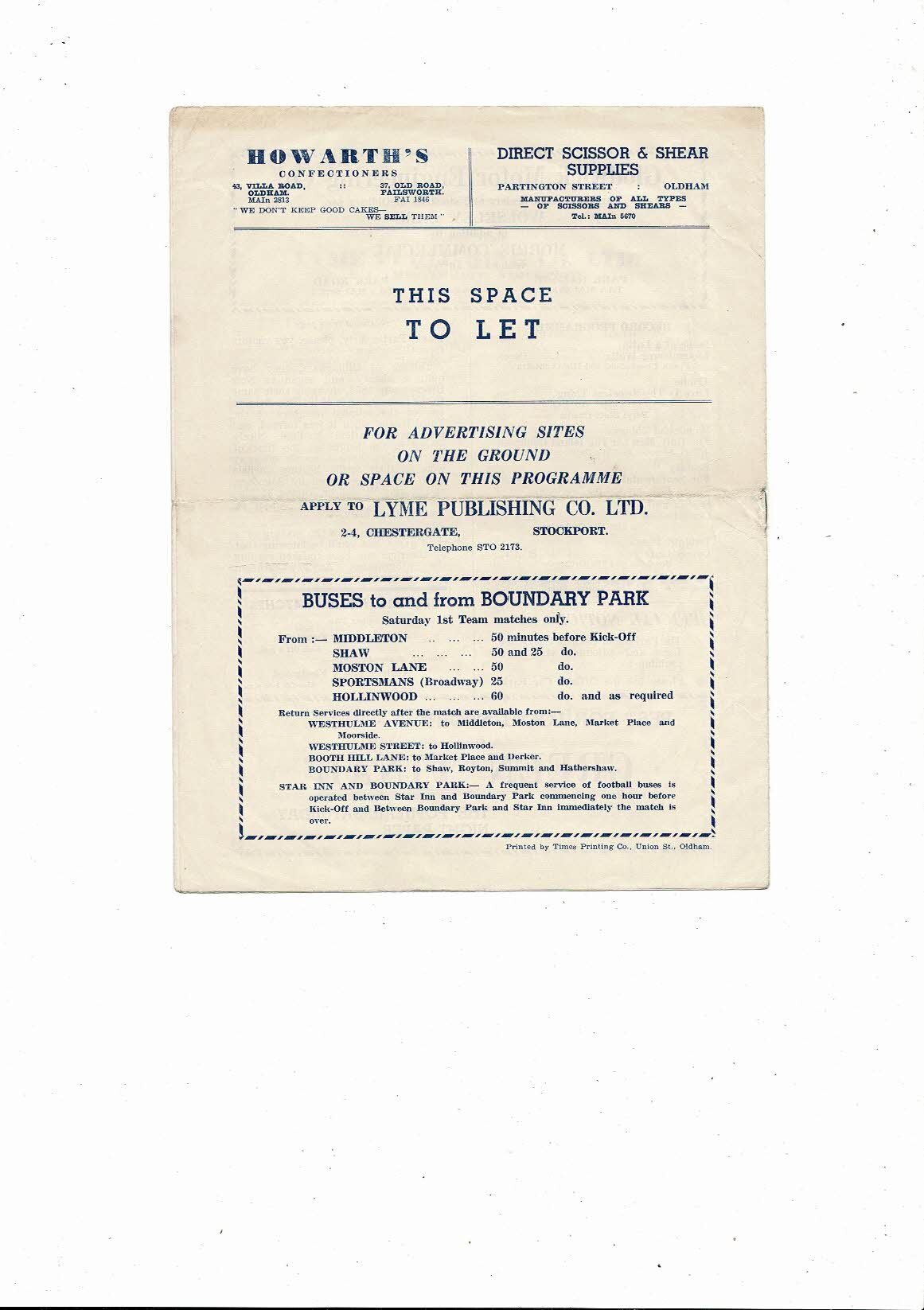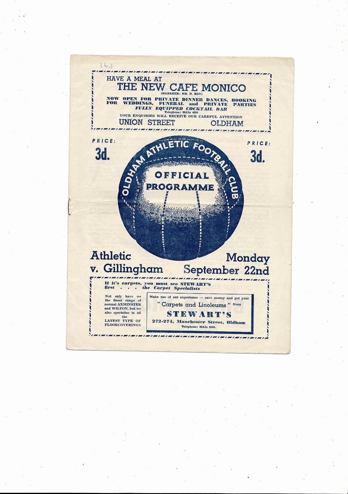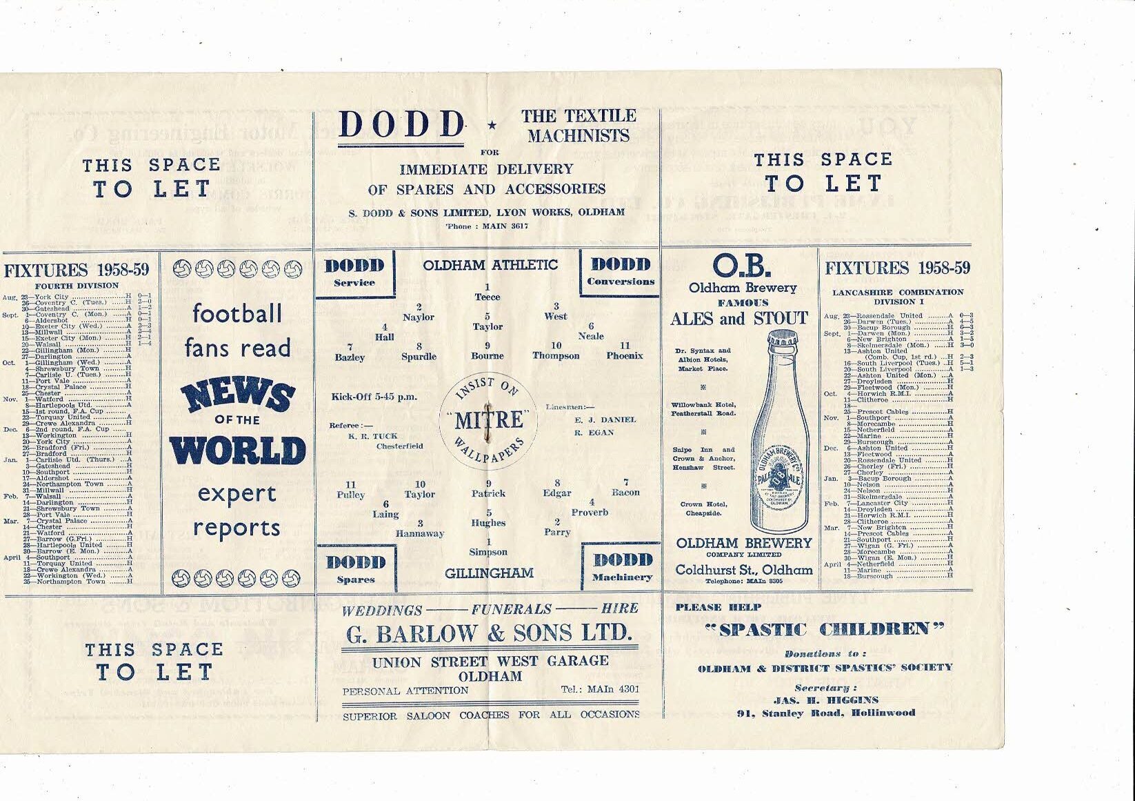 1958/59 Oldham Athletic v Gillingham Football Programme