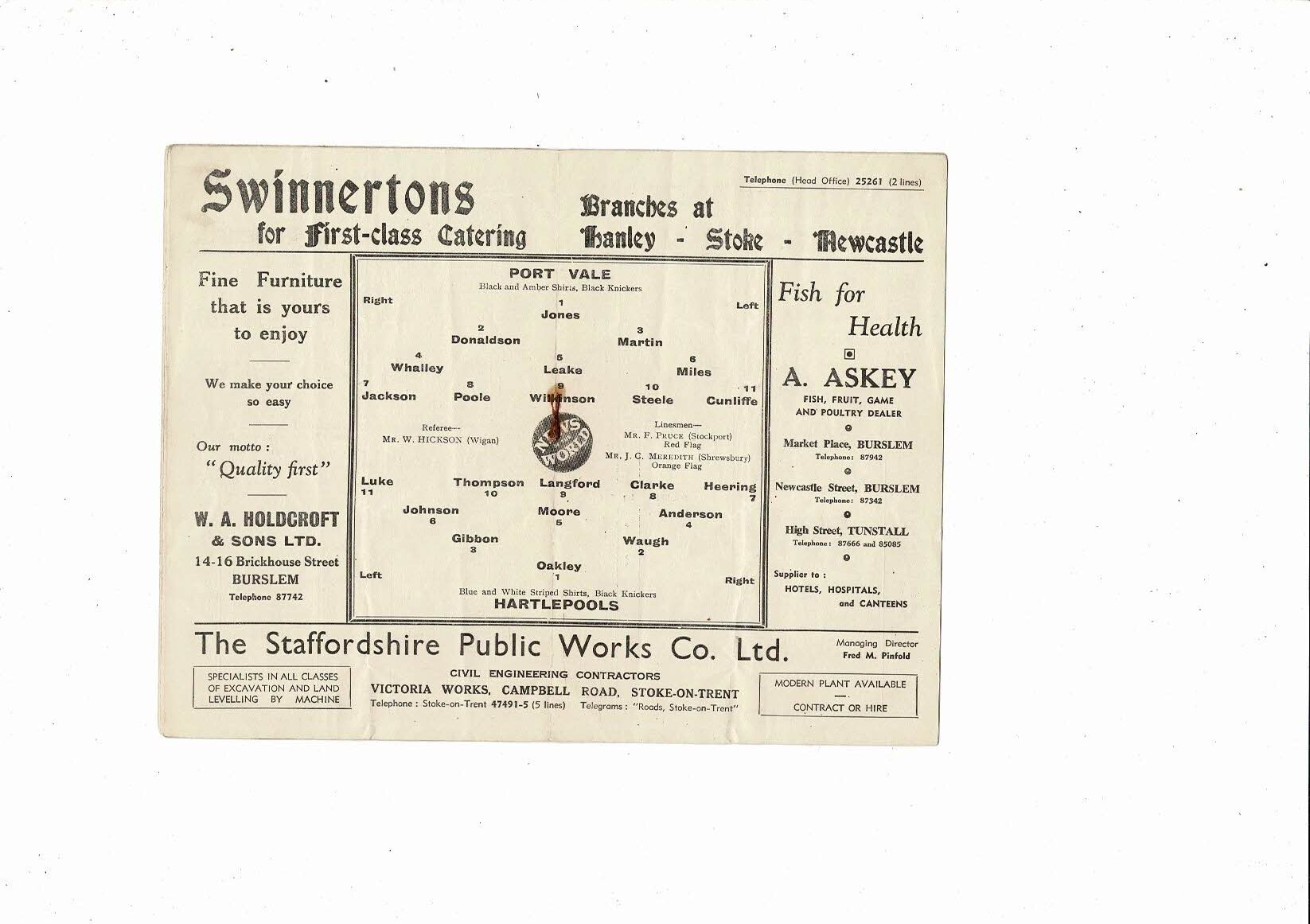 his Original Football Programme is creased also has a fold with some staining, small tear at both ends of spine, tiny nic on front, score & date on front with some results noted in pencil & rusty staple. Please see scans.