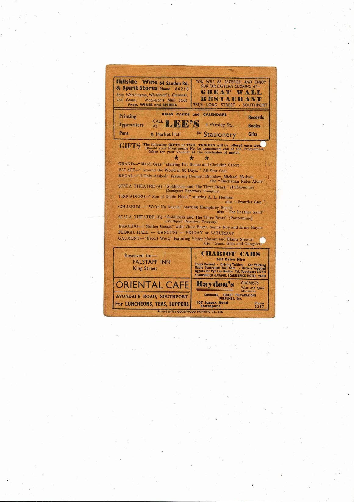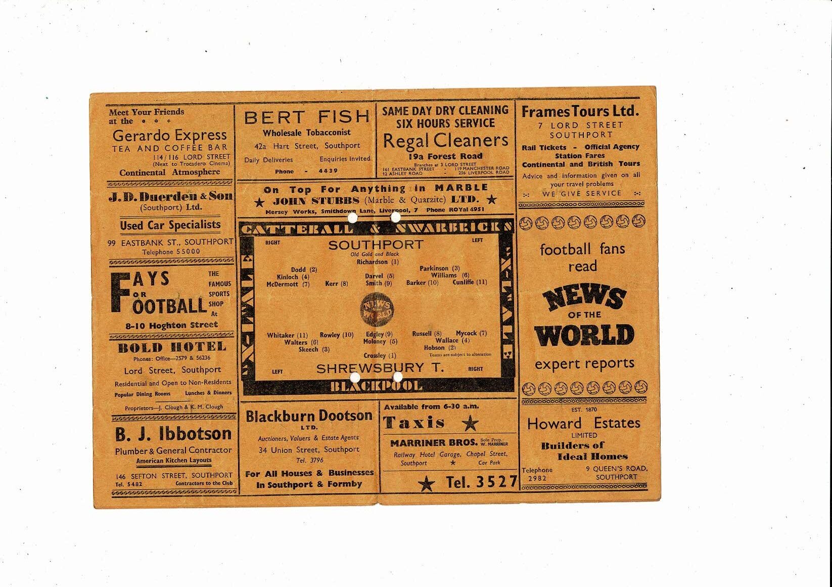 1958/59 Southport v Shrewsbury Town Football Programme