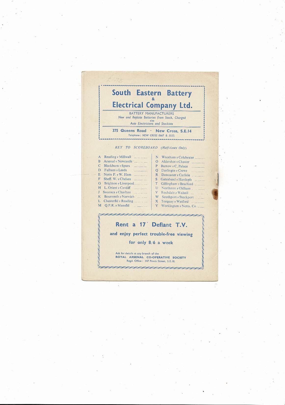 This Original Football Programme is slightly creased with some staining, rusty staple & tin nic on spine. No handwriting. Please see scans.