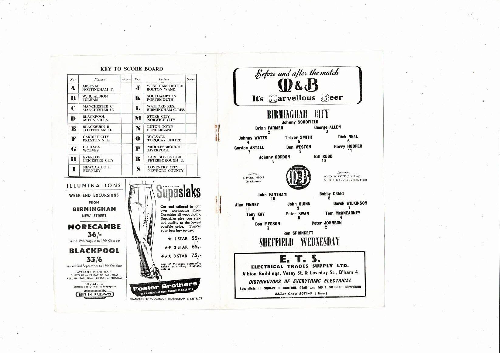 1960/61 Birmingham City v Sheffield Wednesday Football Programme