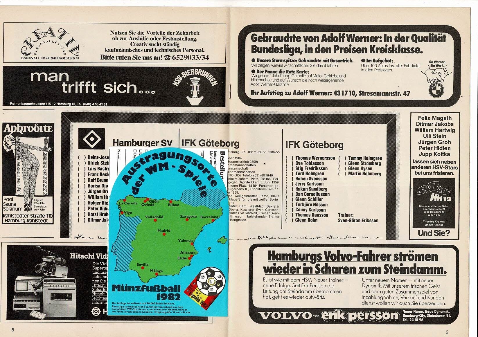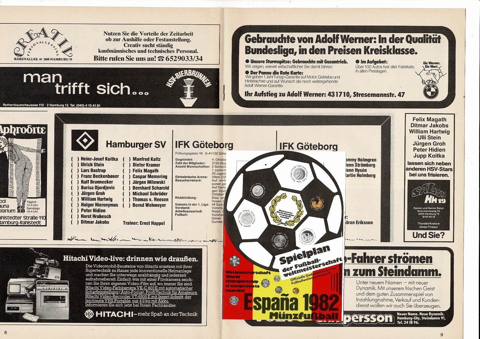 1982 Hamburg v Goteborg UEFA Cup Final Football Programme