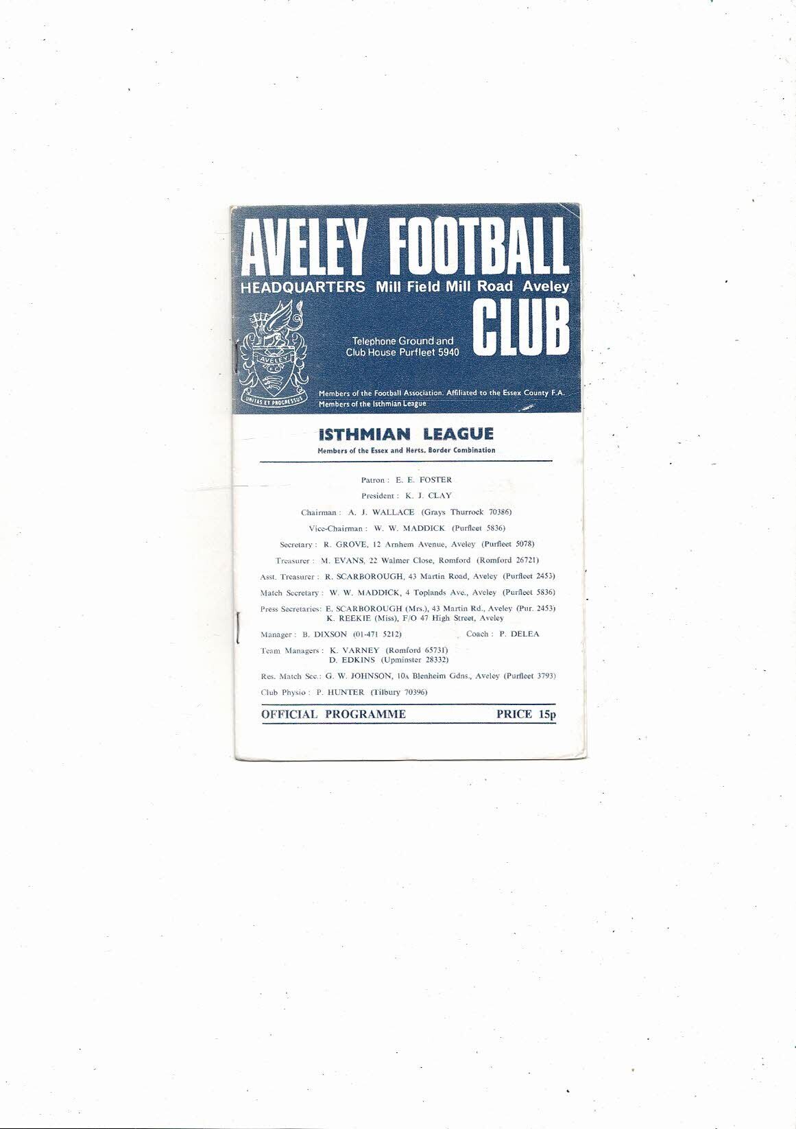 Aveley v Walthamstow Avenue FA Cup Football Programme 1982/83