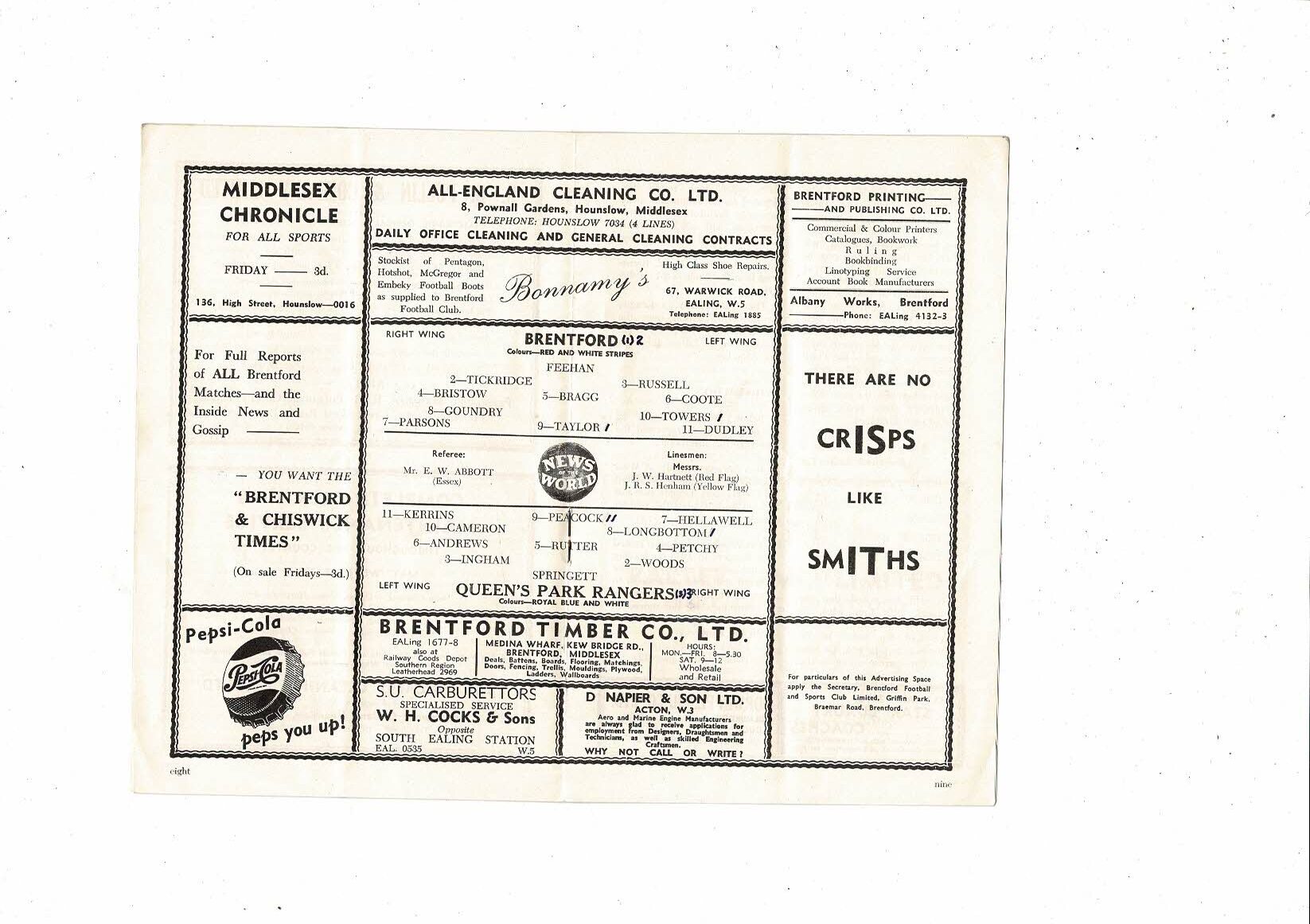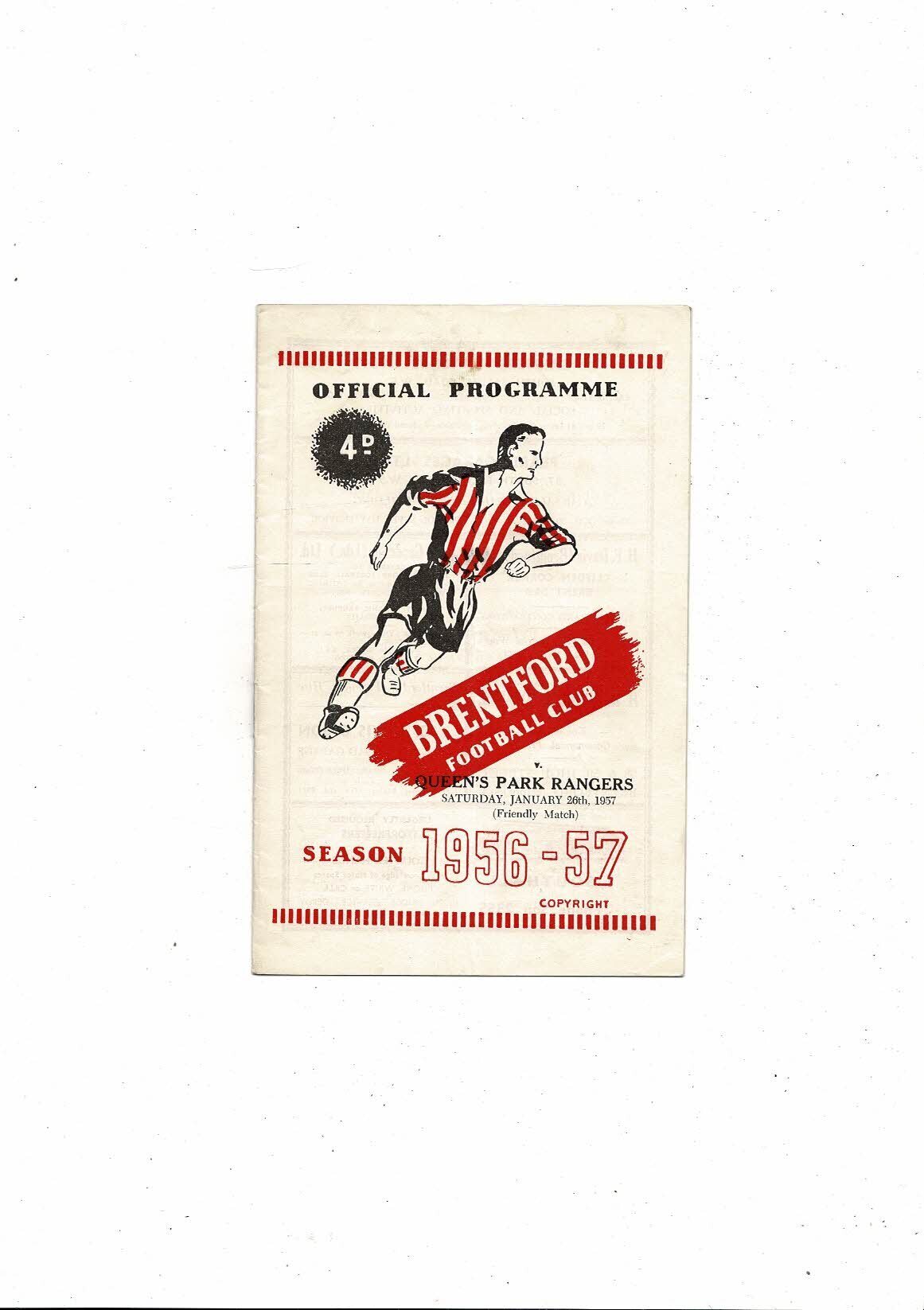 Brentford v Queens Park Rangers Friendly Football Programme 1956/57