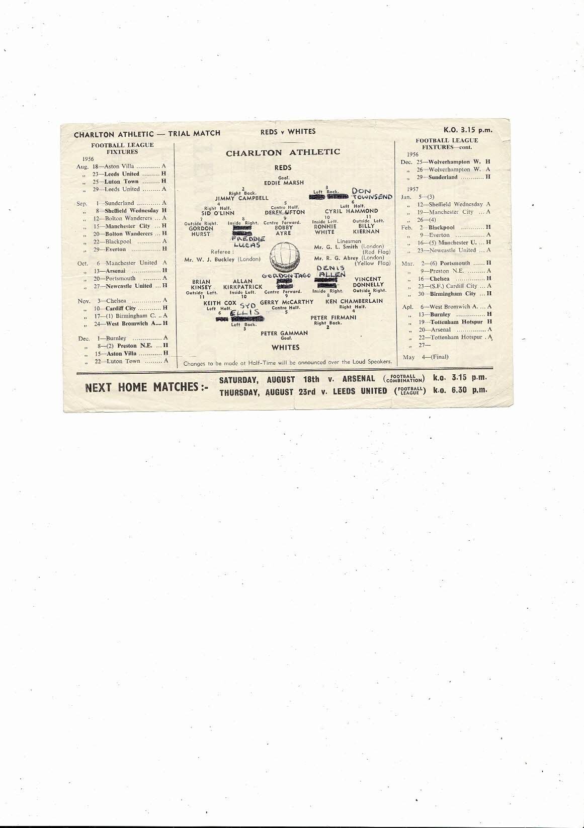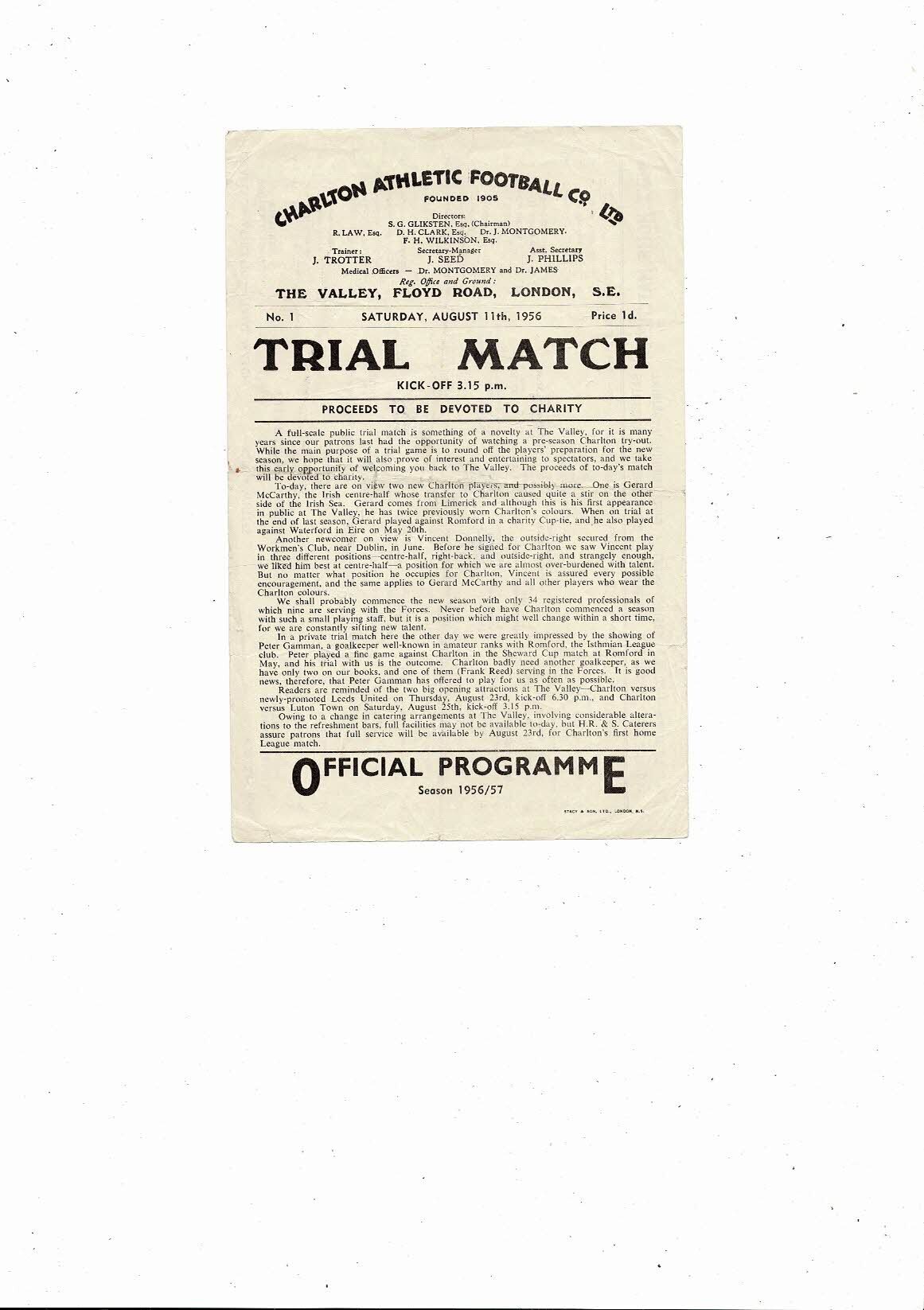 Charlton Athletic Reds v Whites Trial Match Friendly Football Programme 1956/57