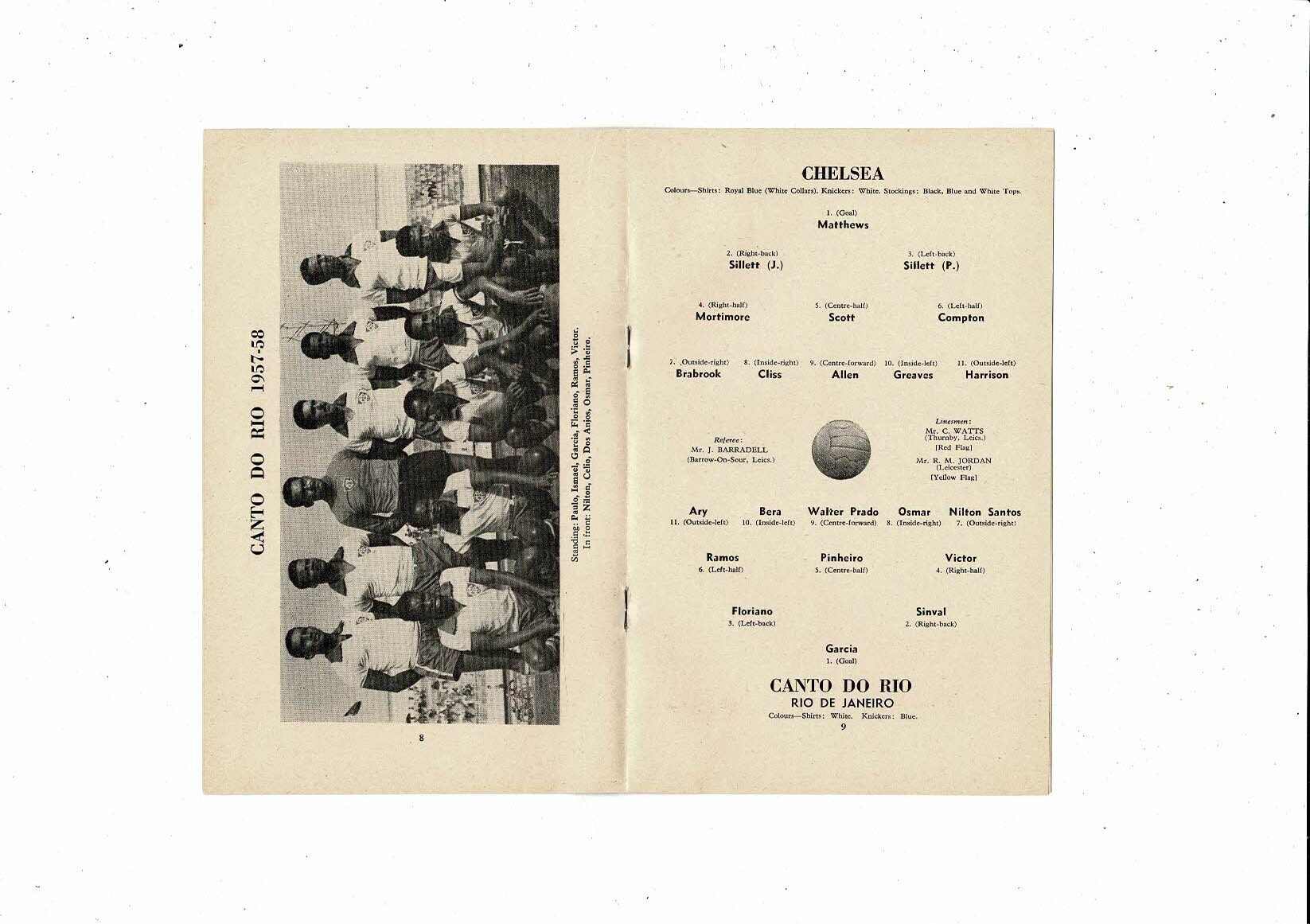 Chelsea v Canto Do Rio Friendly Football Programme 1957/58
