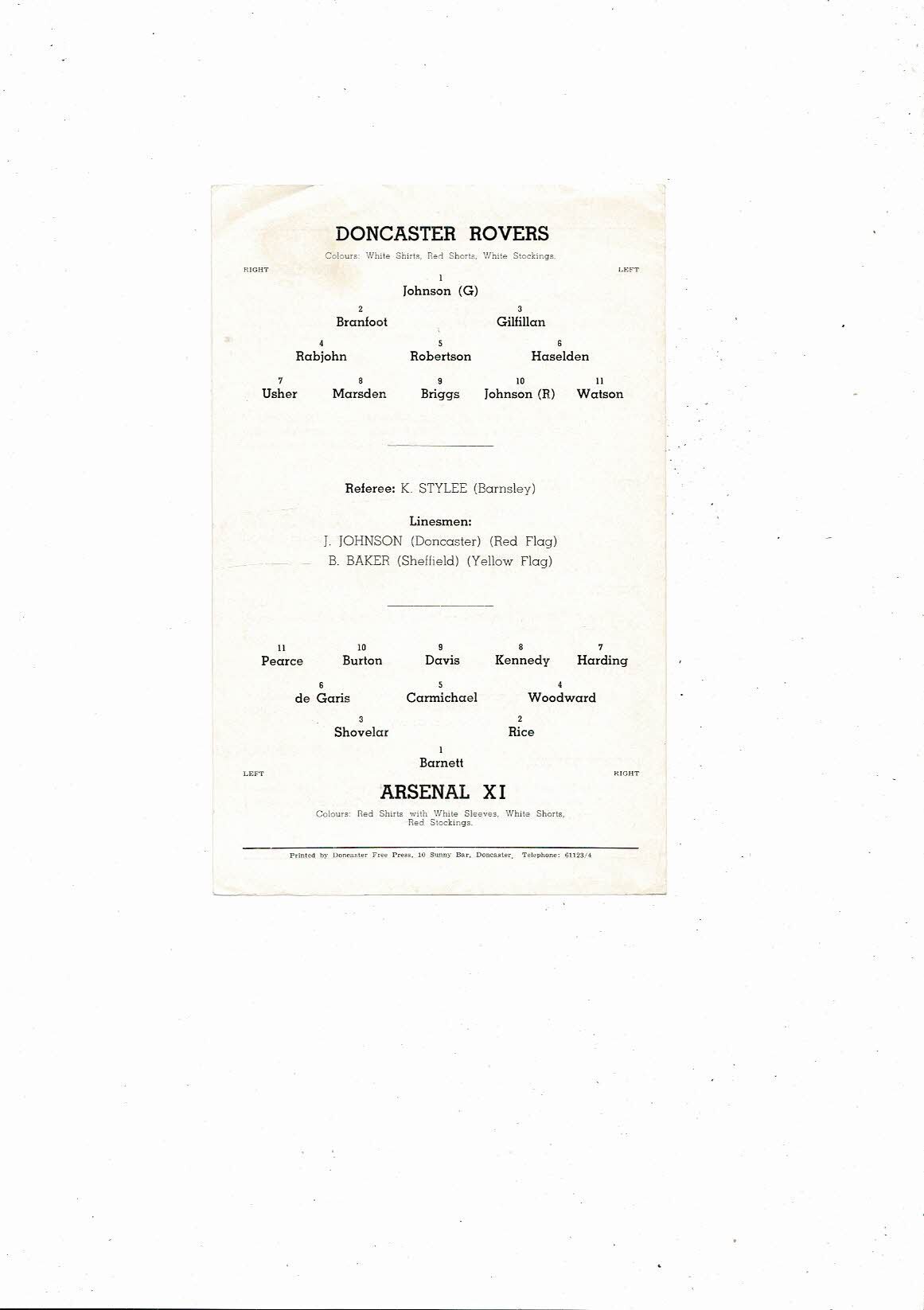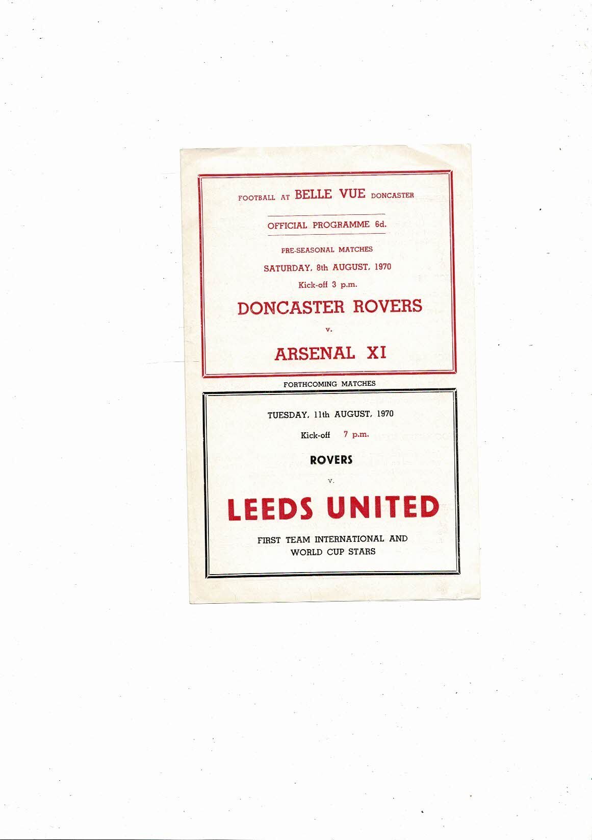 Doncaster Rovers v Arsenal X1 Friendly Football Programme 1970/71