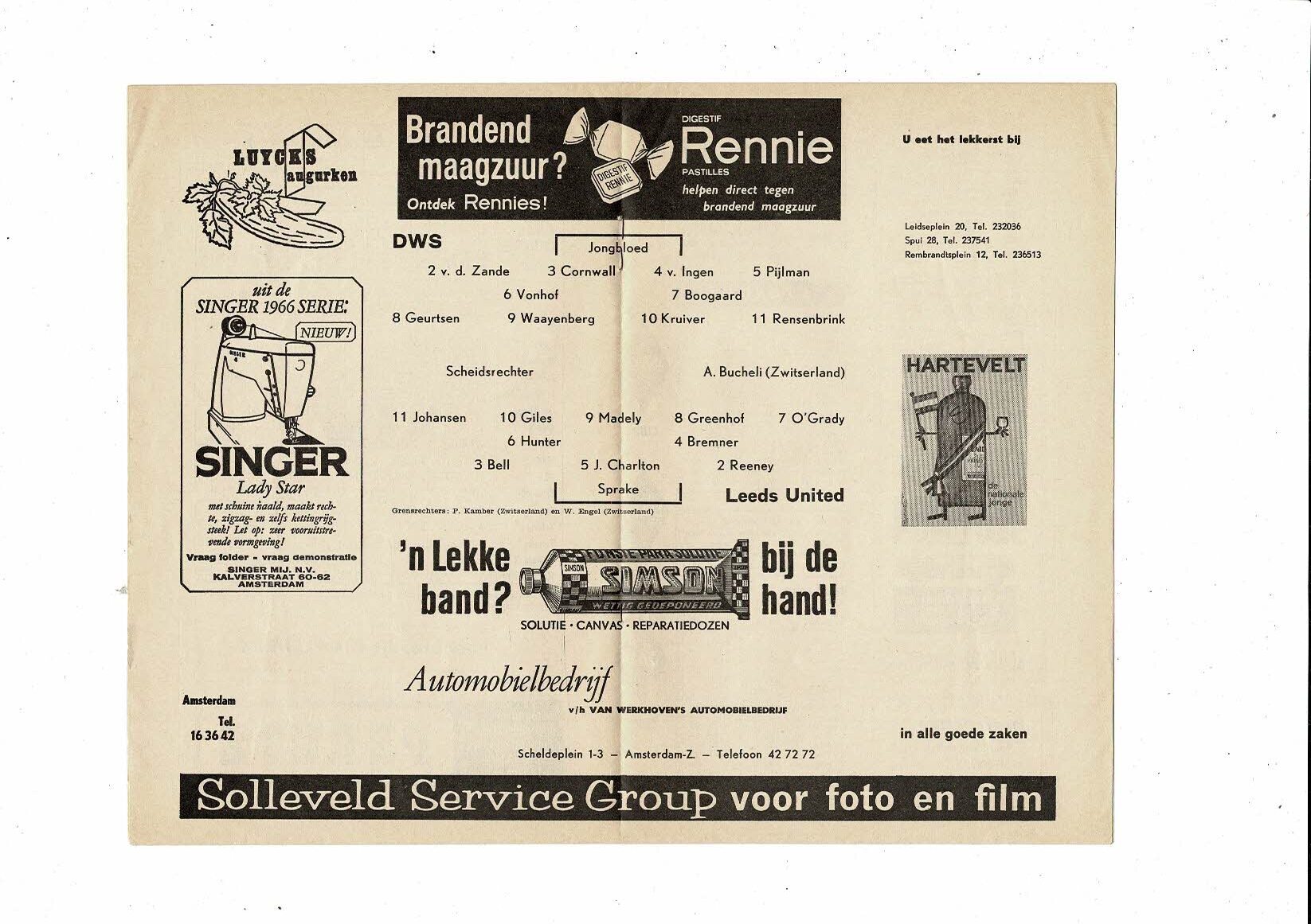 DWS Amsterdam v Leeds United Fairs Cup Football Programme 1966/67