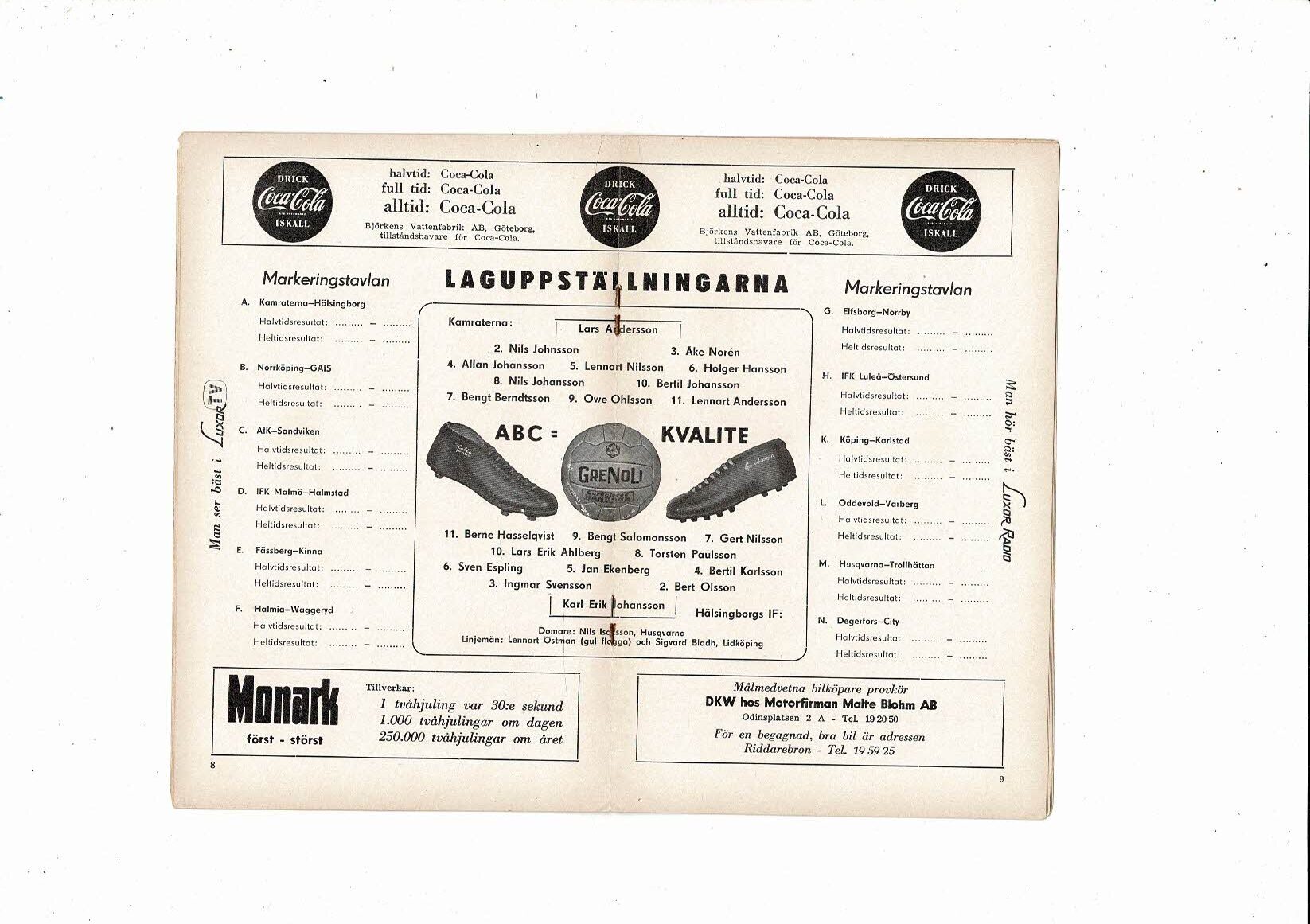 Kamraterna v Helsingborgs Swedish Football Programme 1959/60