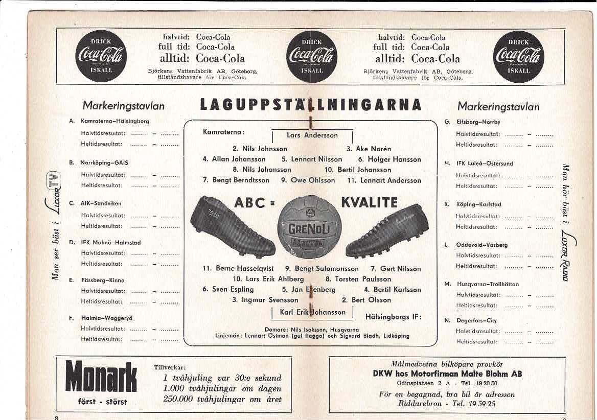 Kamraterna v Helsingborgs Swedish Football Programme 1959