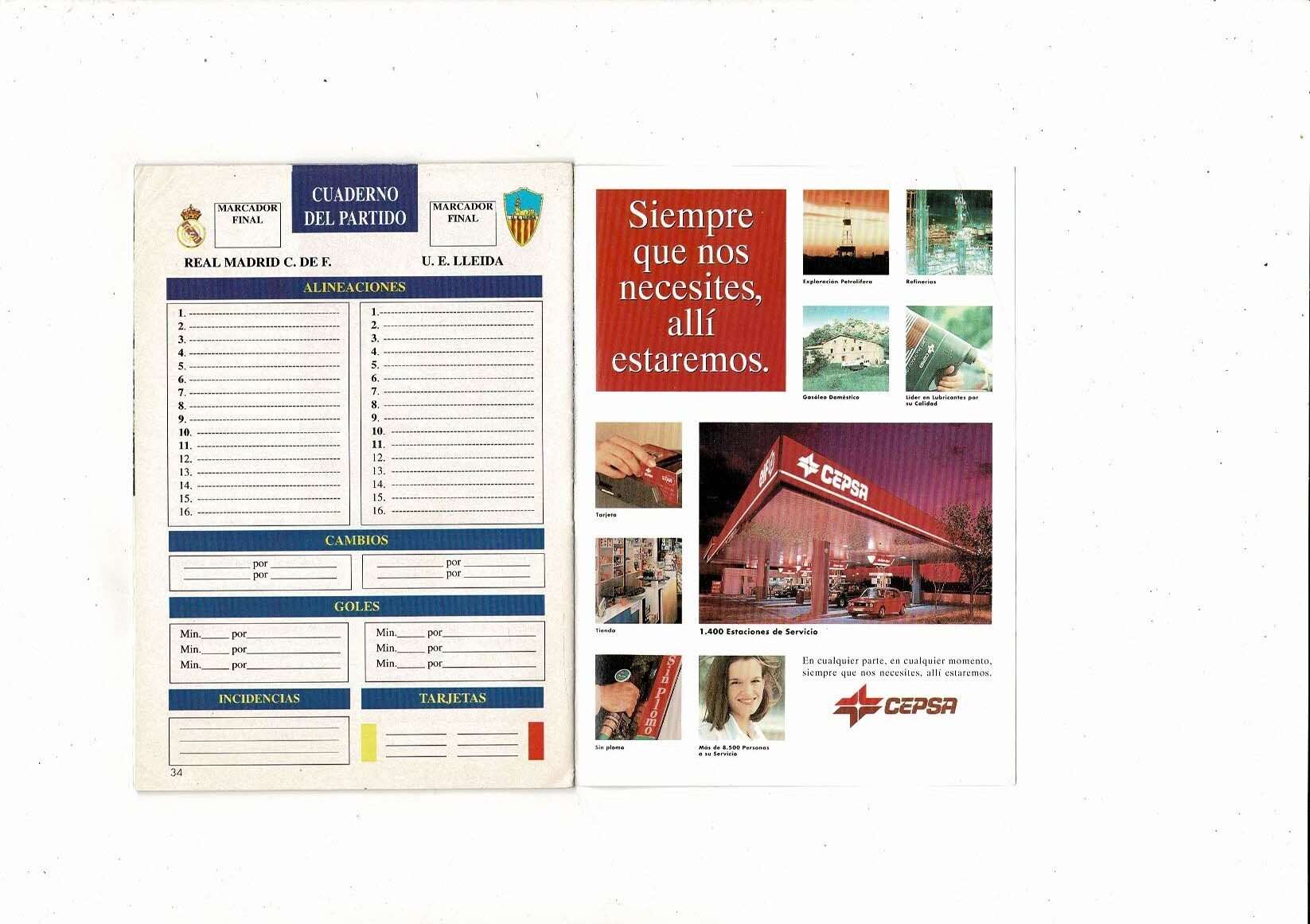 Real Madrid v Lleida La Liga Ist Division Football Programme 1993/94