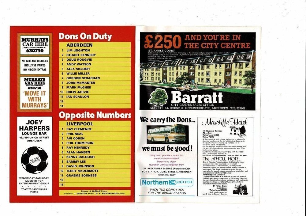 Aberdeen v Liverpool European Cup Football Programme 1980/81