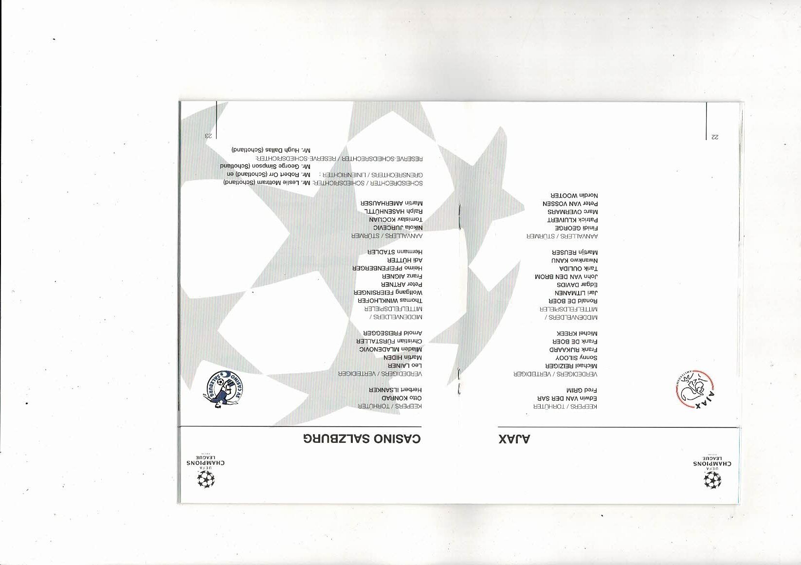 Ajax v Casino Salzburg UEFA Champions League Football Programme 1994/95