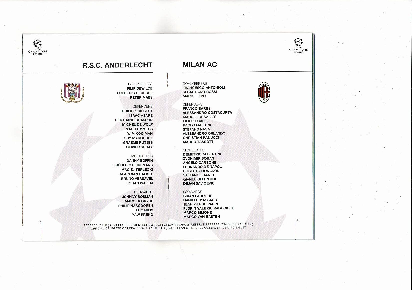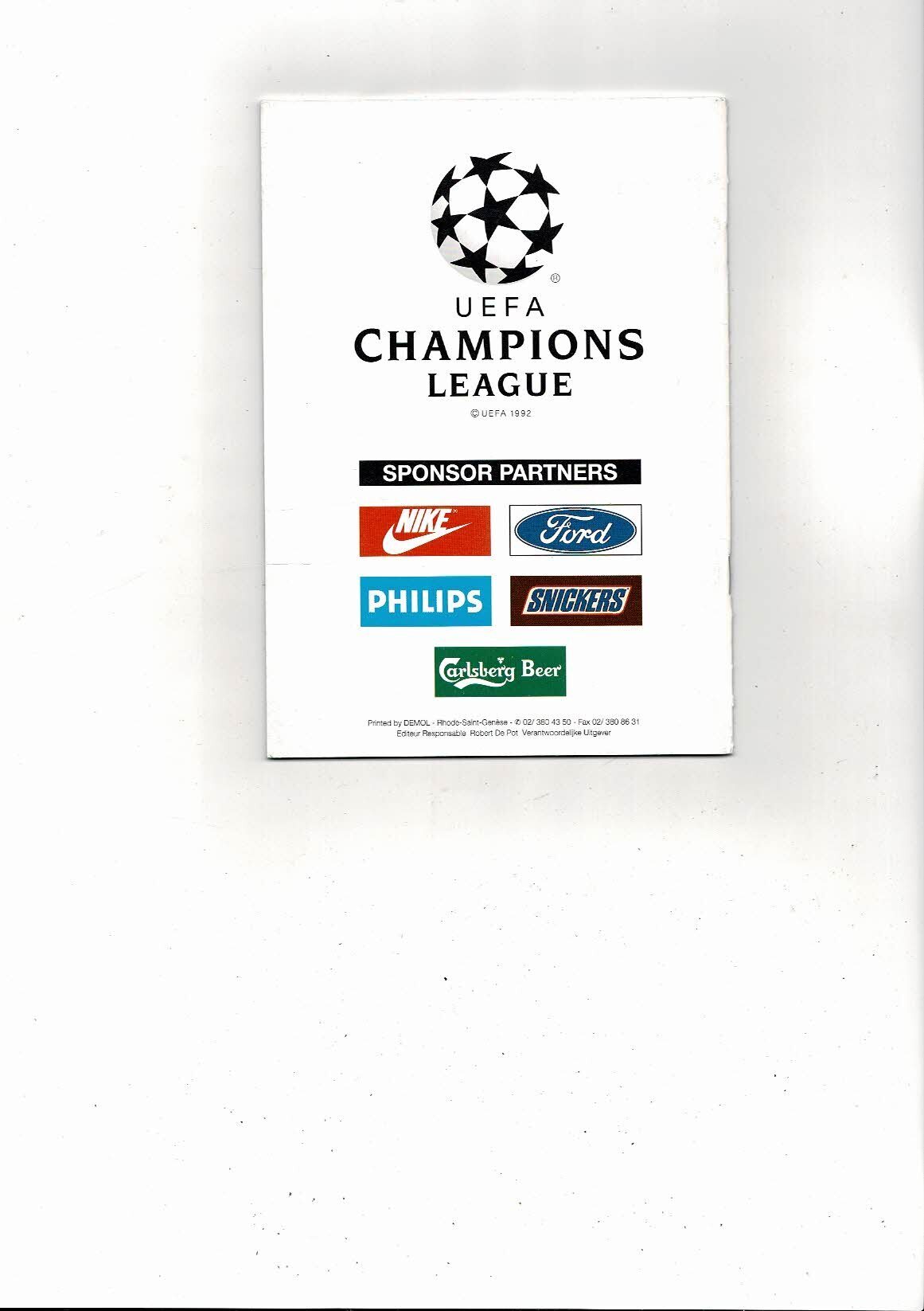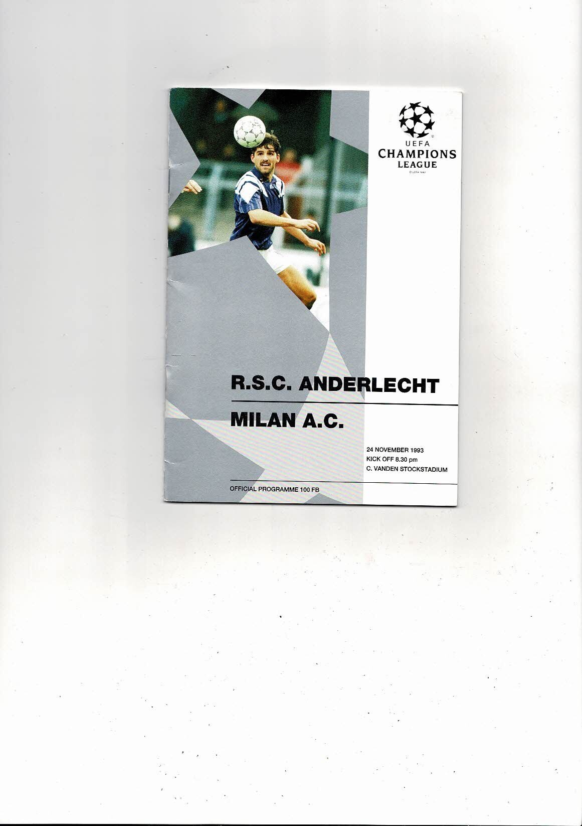 Anderlecht v AC Milan UEFA Champions League Football Programme 1993/94