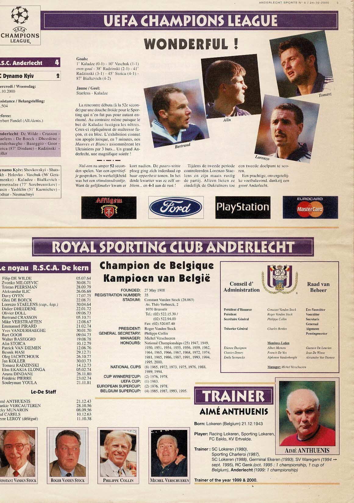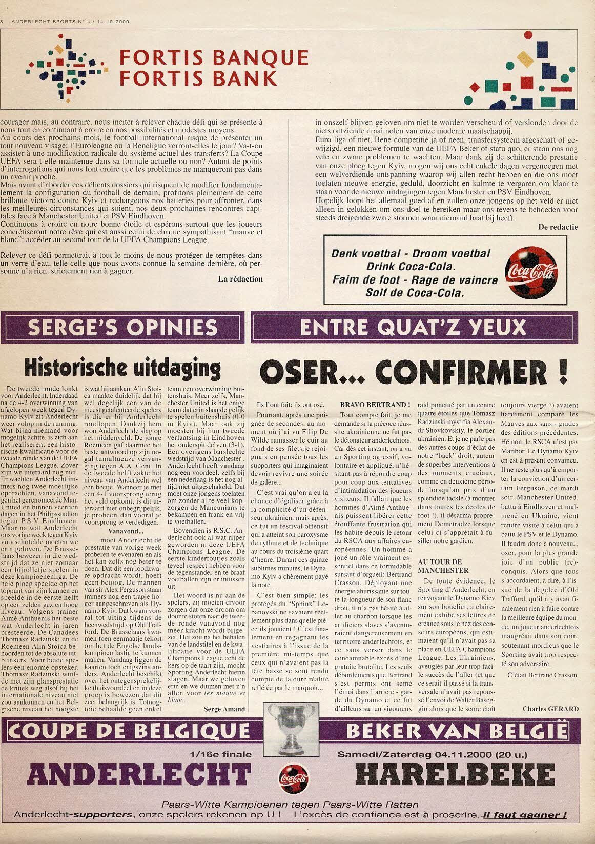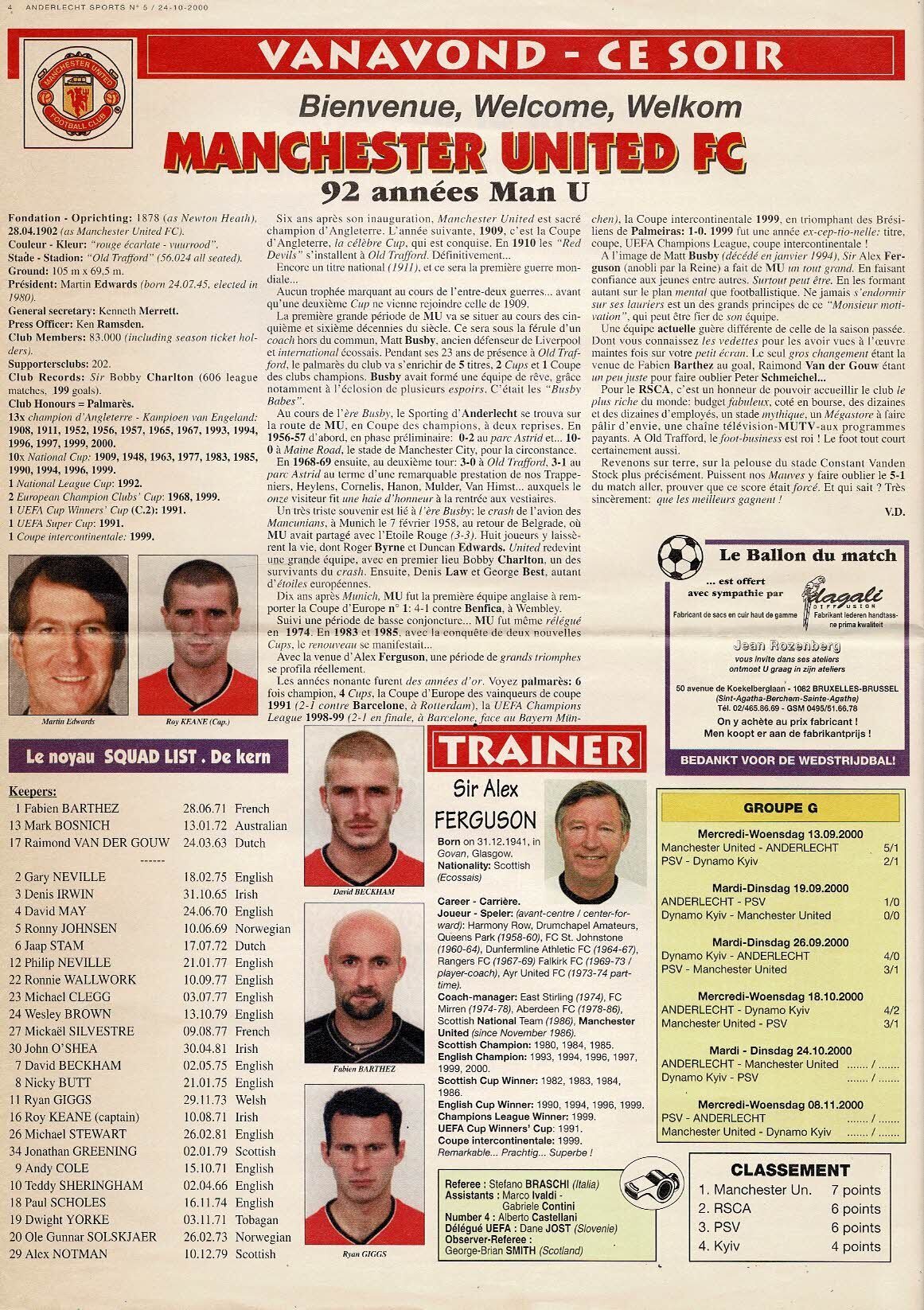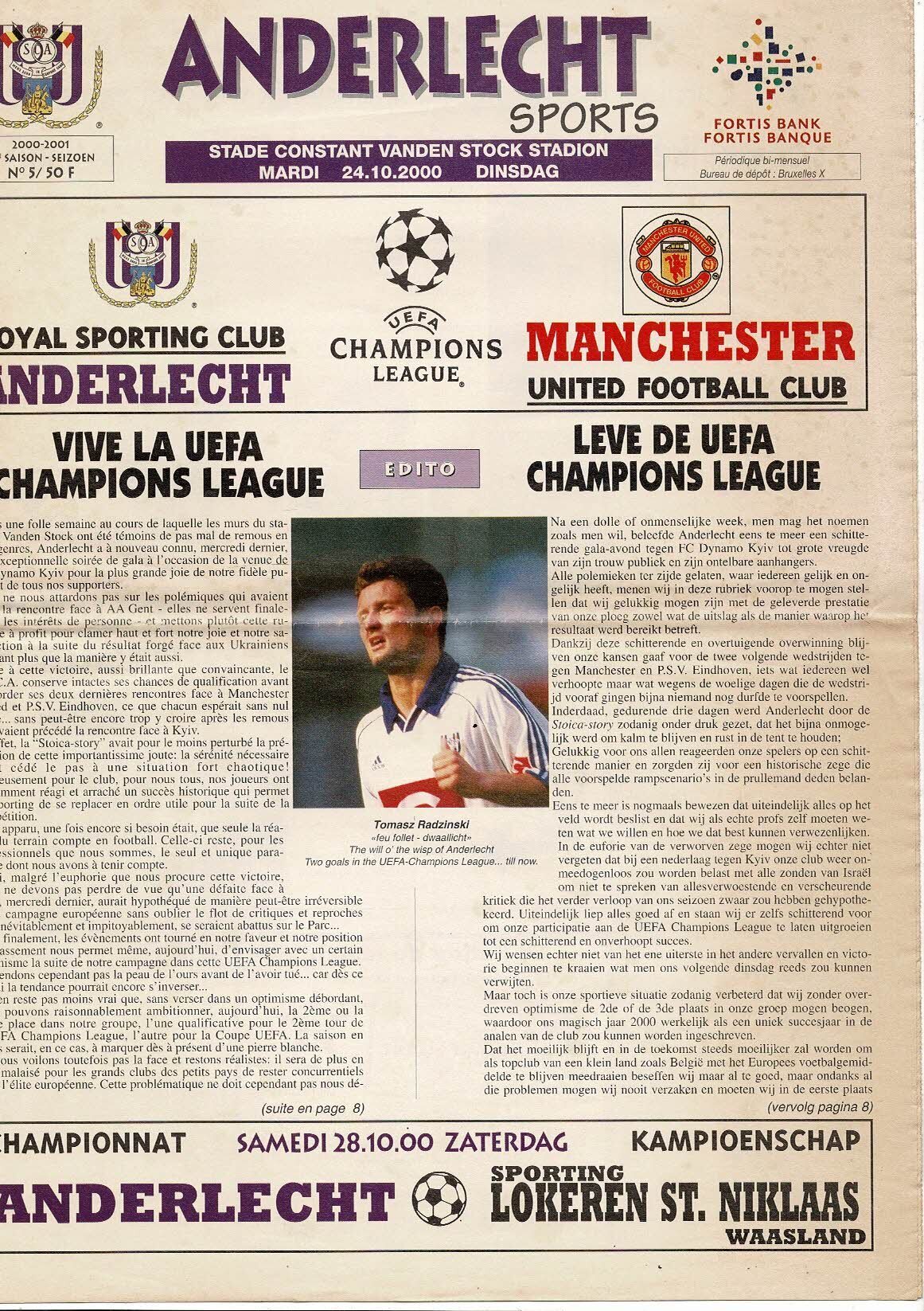 Anderlecht v Manchester United Champions League Football Programme 2000/01