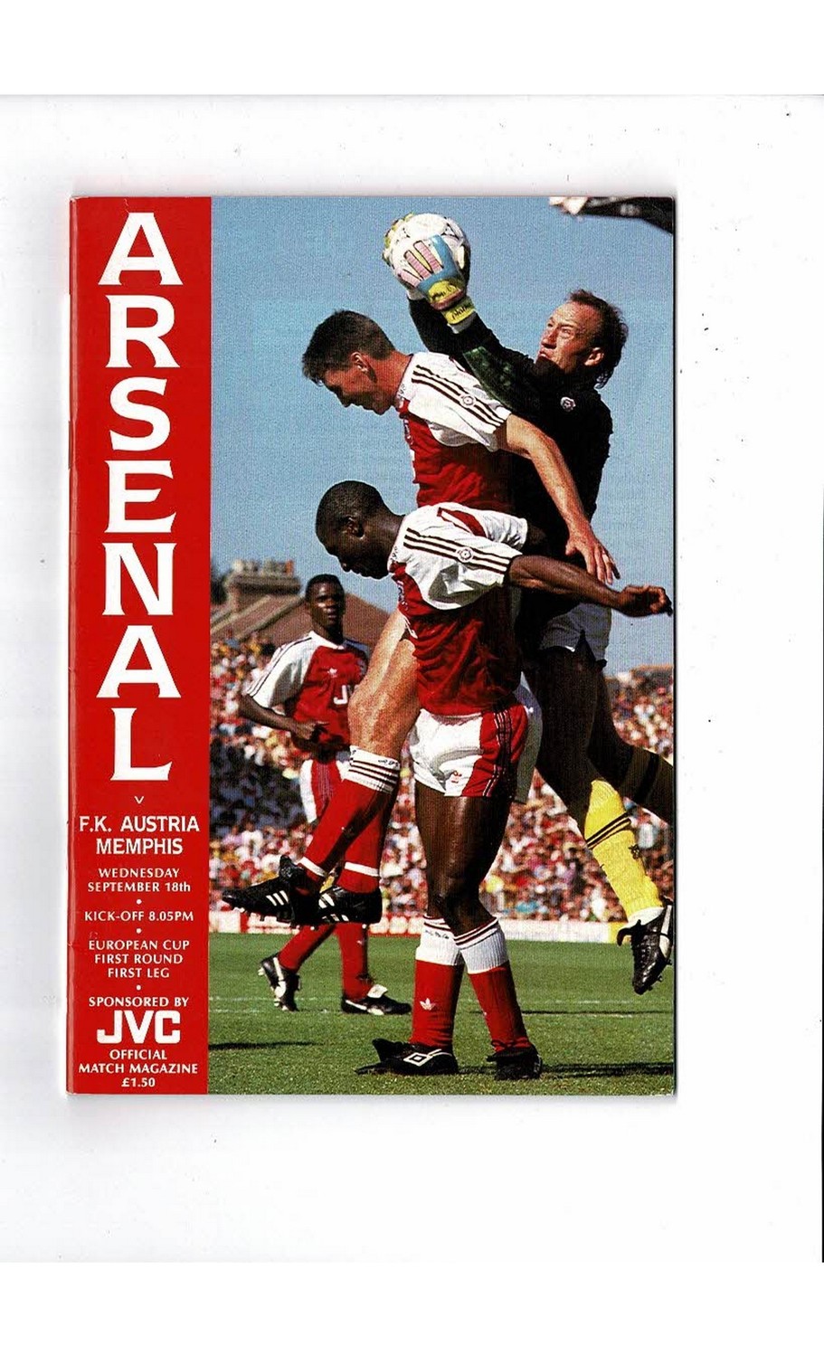 Arsenal v Austria Memphis European Cup Football Programme 1991/92