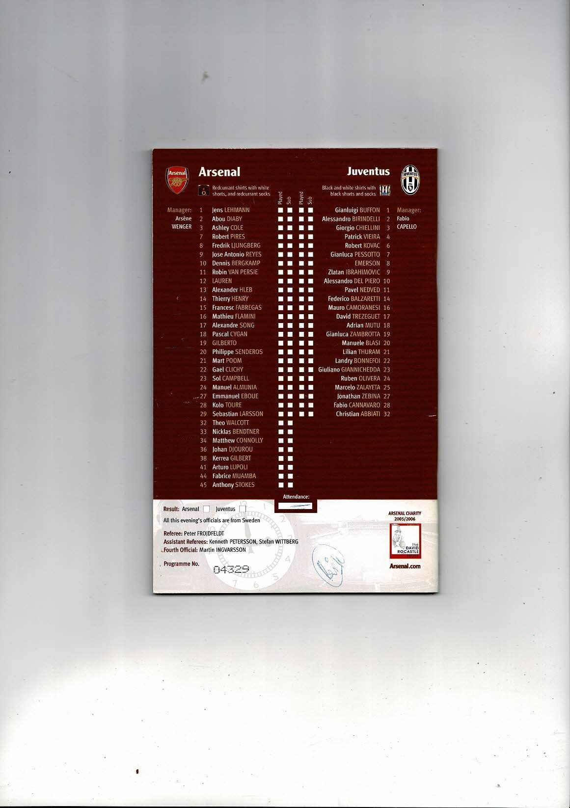 Arsenal v Juventus Champions League Football Programme 2005/06