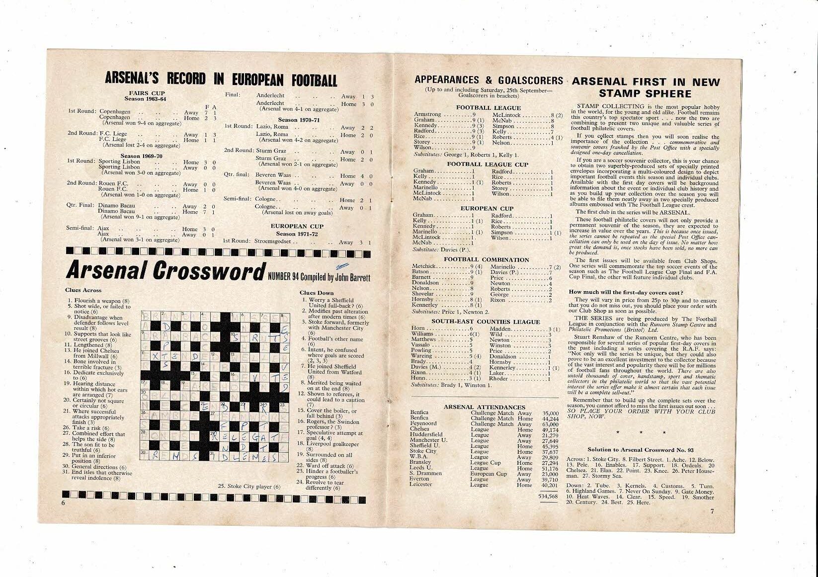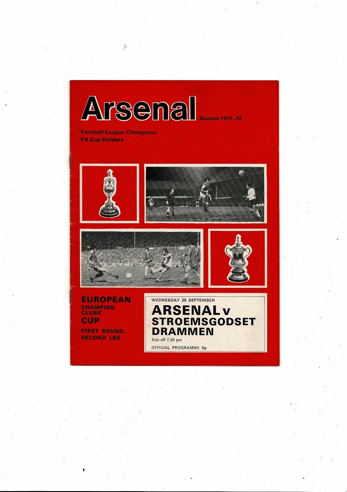 Arsenal v Stroemsgodset European Cup Football Programme 1971/72