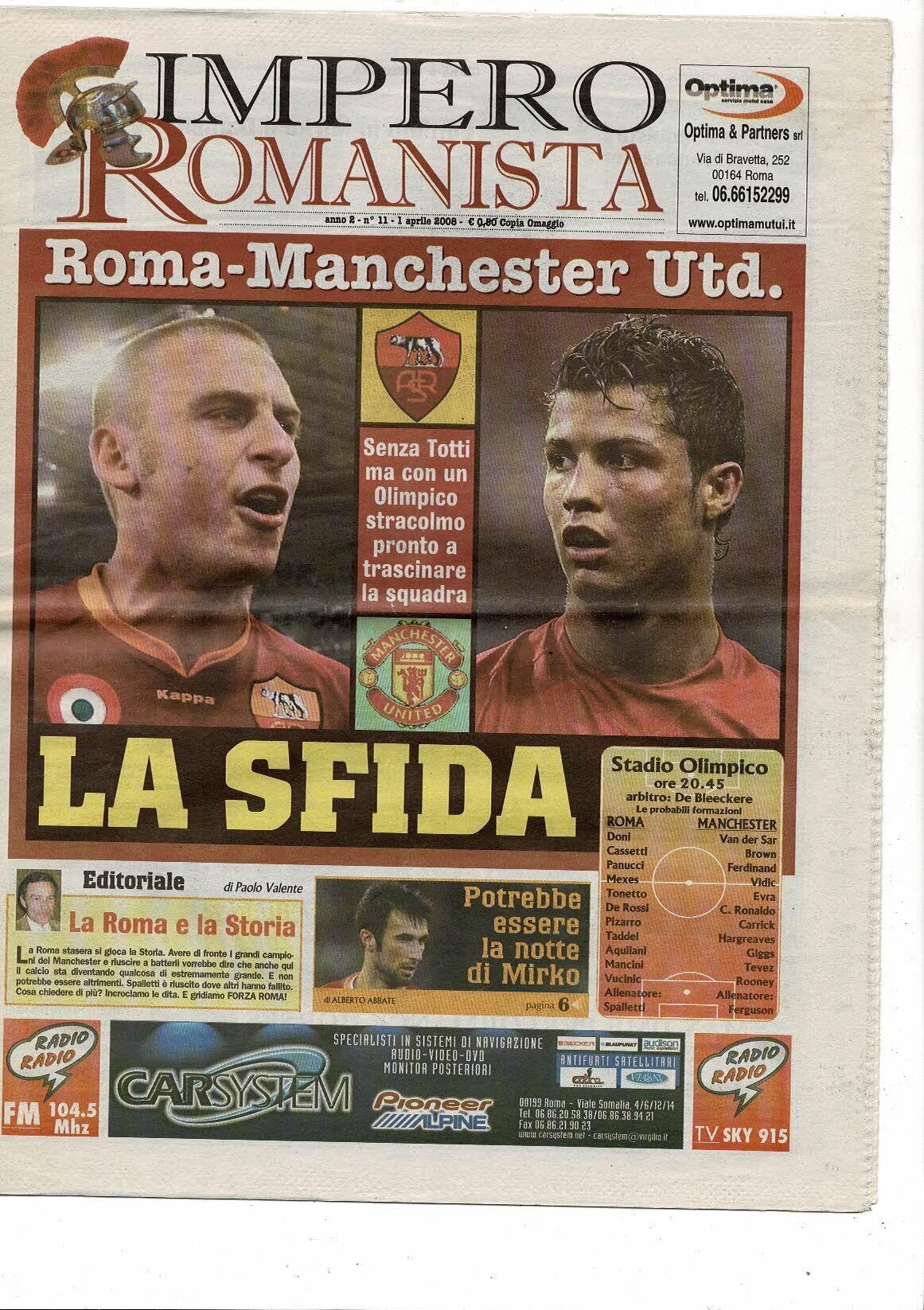AS Roma v Manchester United Champions League Impero Romanista Newspaper Supplement (01/04/2008) 2007/08