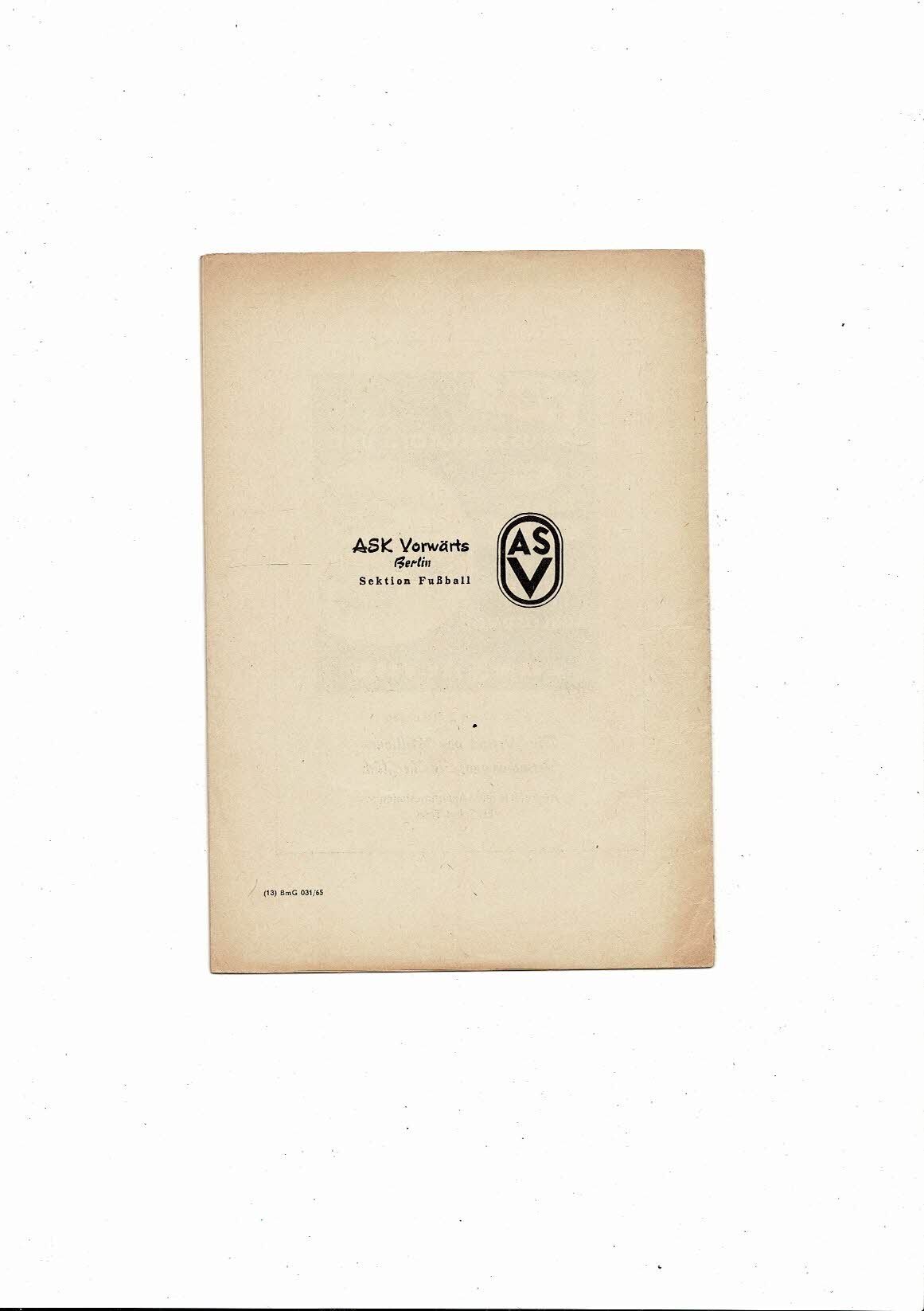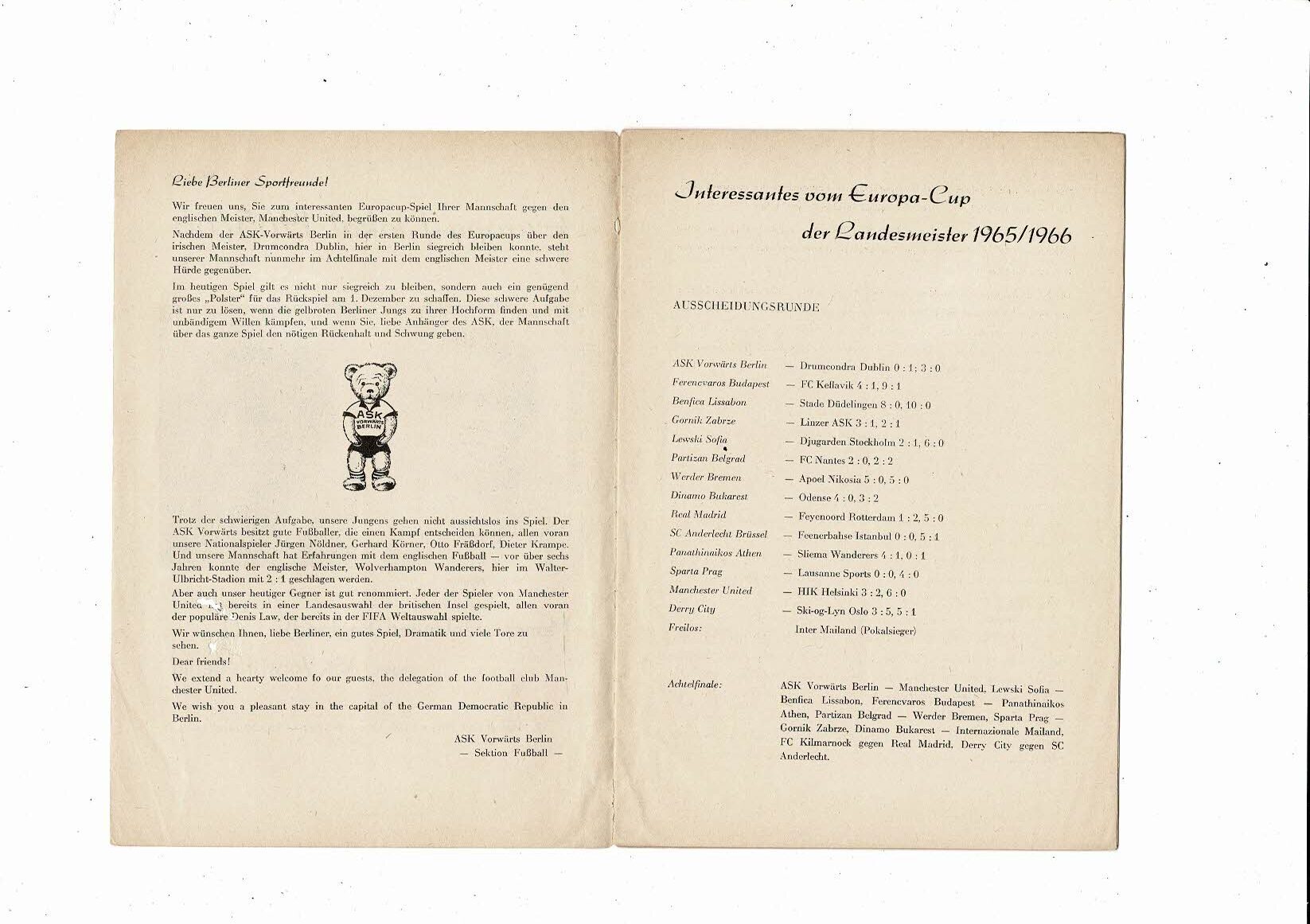 ASK Vorwarts Berlin v Manchester United European Cup Football Programme 1965/66