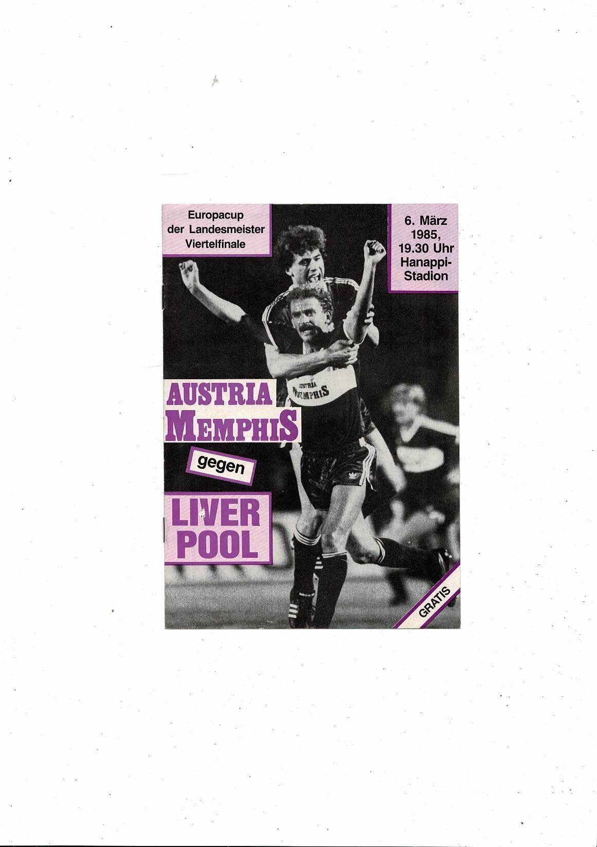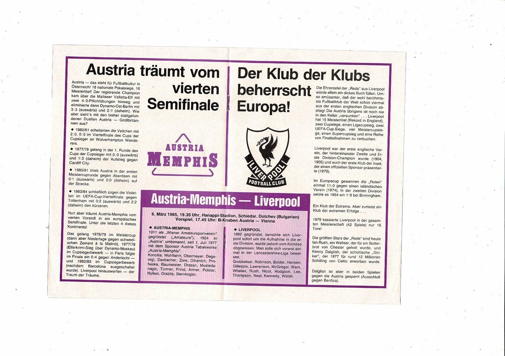 Austria Memphis v Liverpool European Cup Football Programme 1984/85