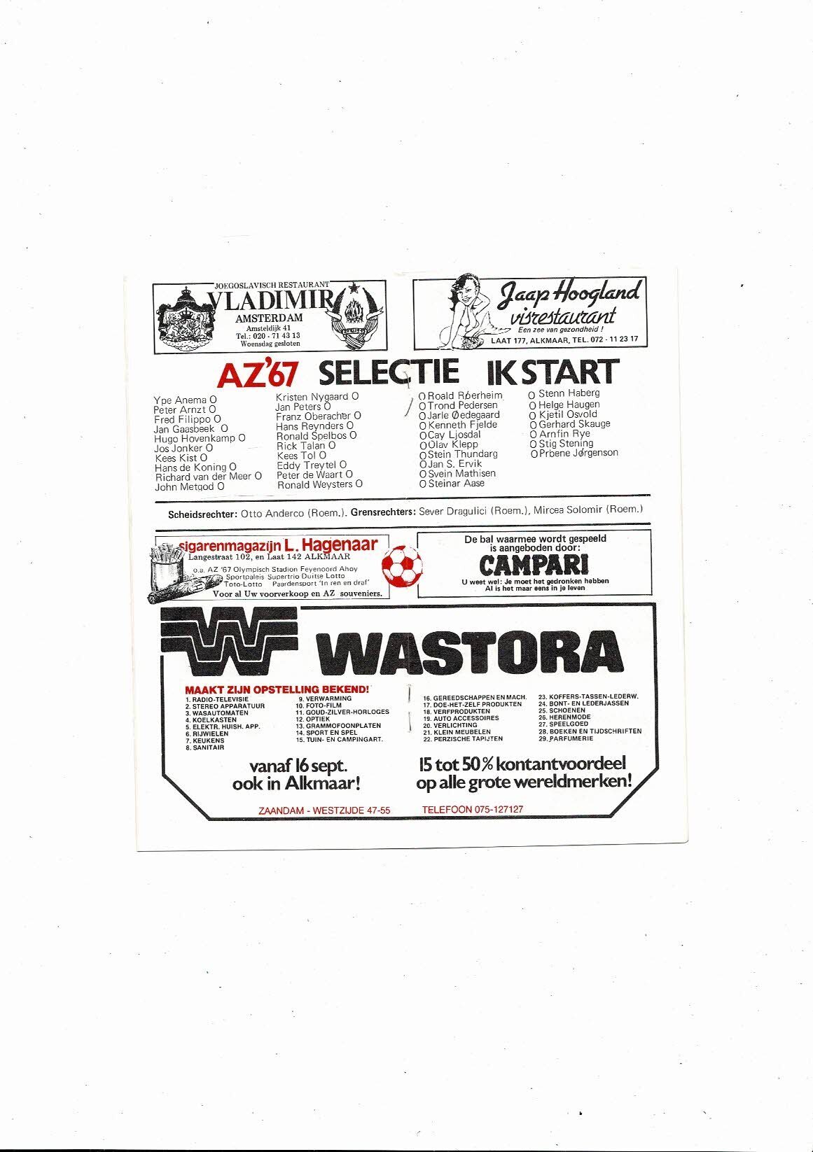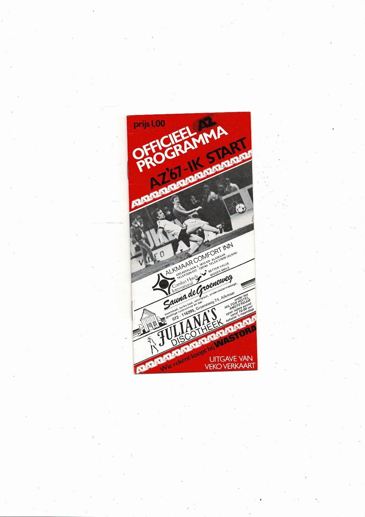 AZ 67 Alkmaar v IK Start European Cup Football Programme 1981/82