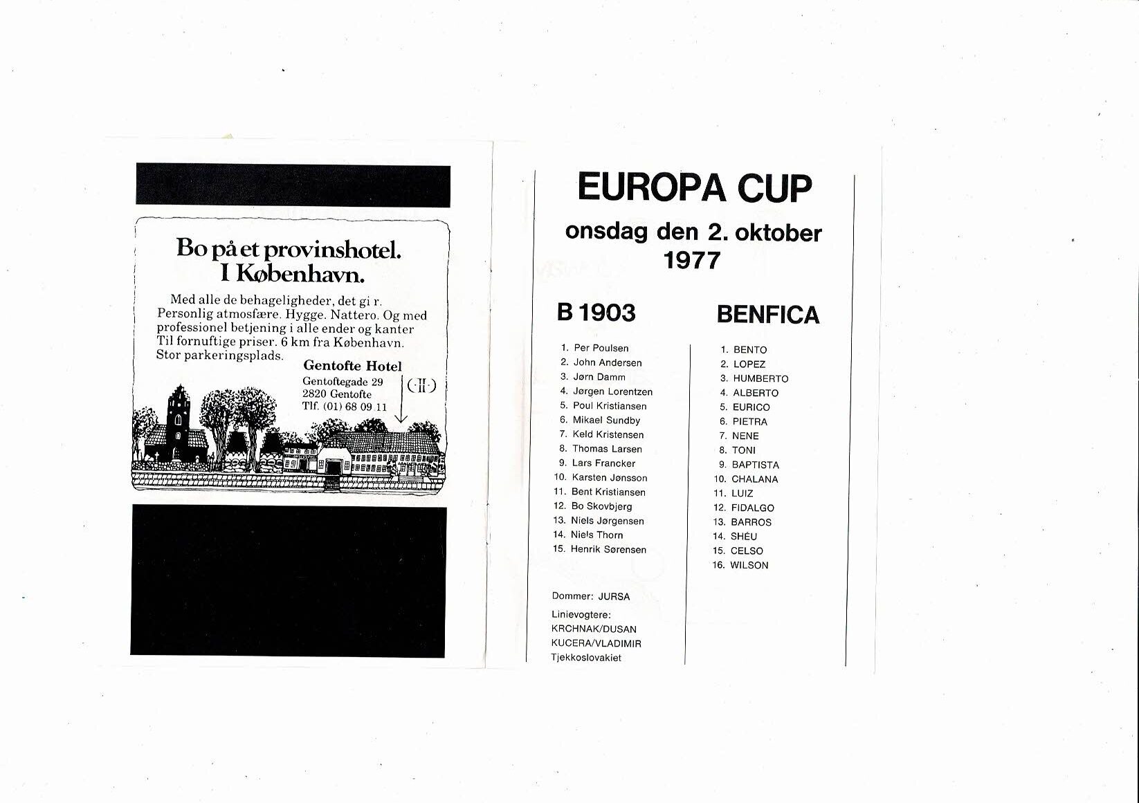 B1903 Copenhagen v Benfica European Cup Football Programme 1977/78