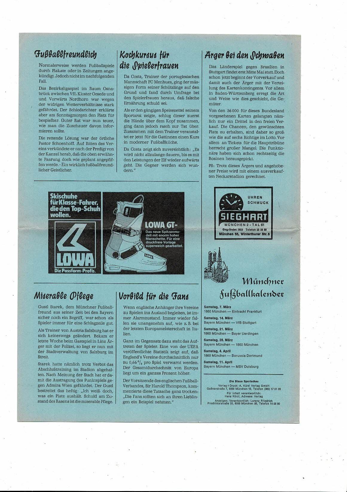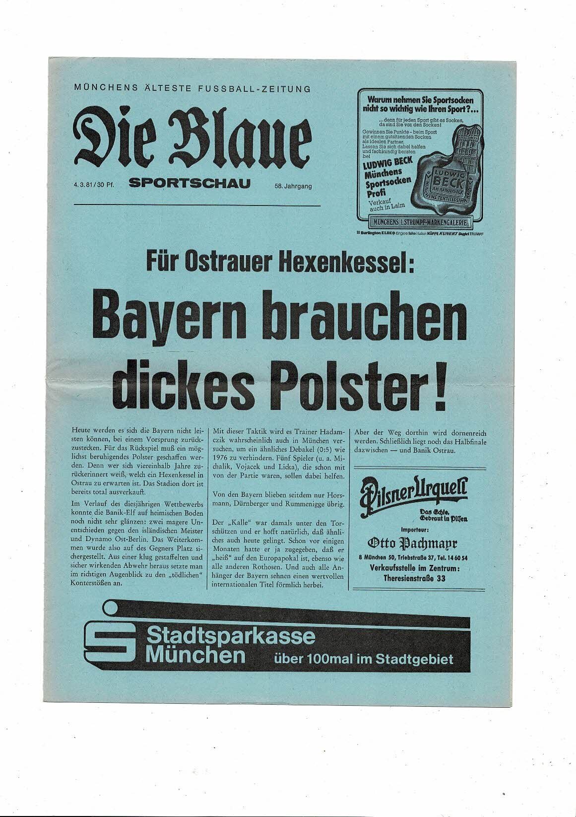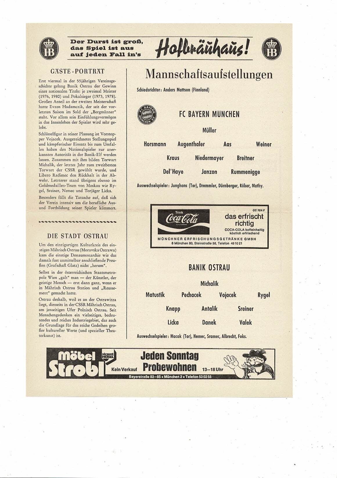Bayern Munich v Banik Ostrau Champions League Programme Die Blaue 1980/81
