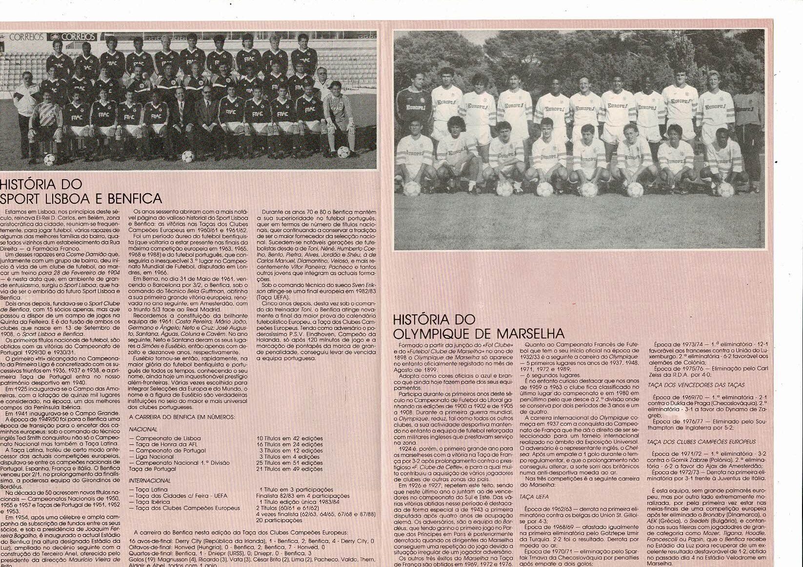 Benfica v Olympique Marsaille European Cup Semi Final Football Programme 1989/90