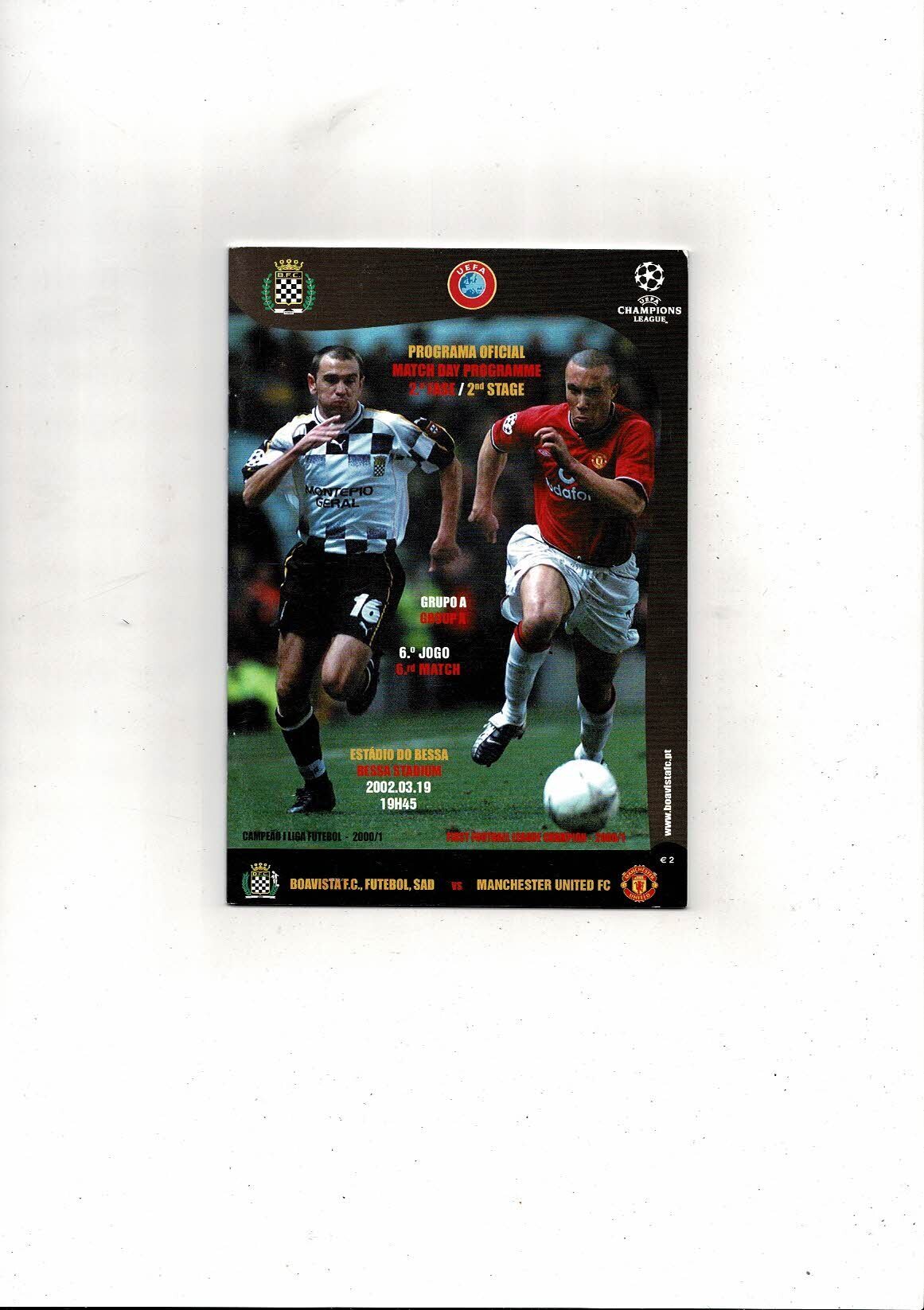 Boavista v Manchester United Champions League Football Programme 2001/02