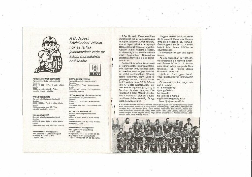 Budapest Honved v Celtic European Cup Football Programme 1988/89